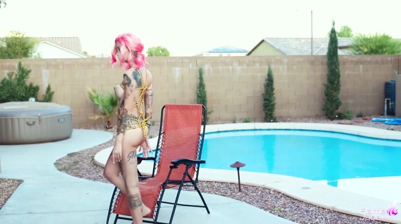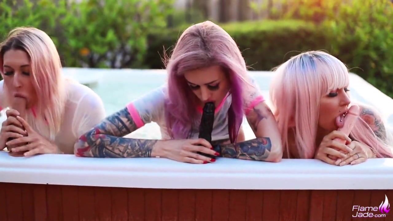 Tattoed s Play Pussys and Suck Dildo near the Pool in the Resort - Flam