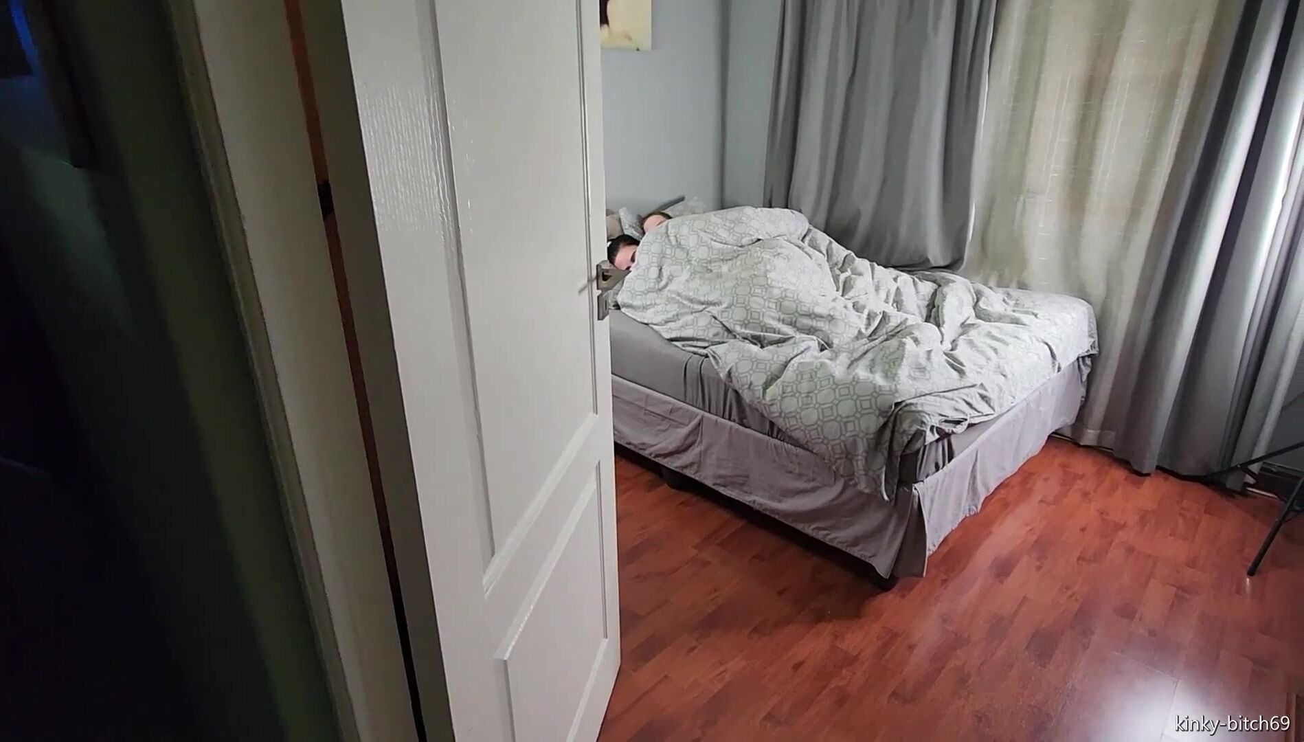Licking piss off of annoyed slut's pussy, stomach and tits after the 2 of us and 1 cock had bedroom watersports fun, French kissing