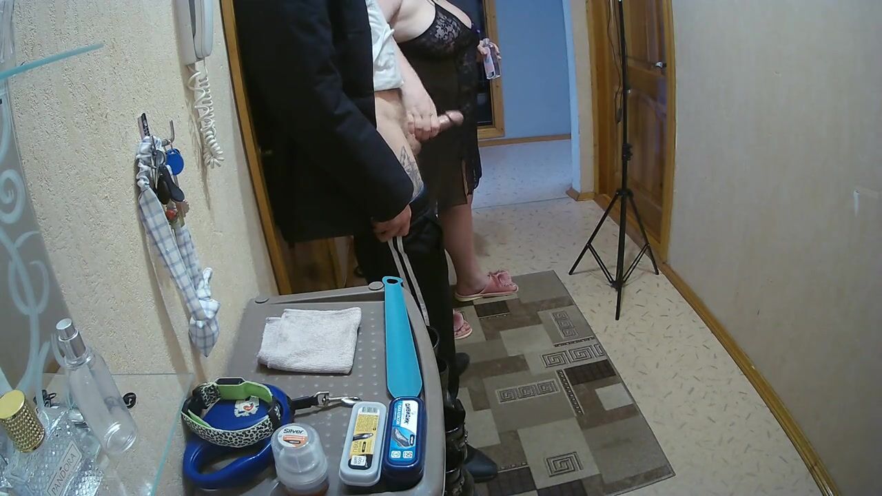a friend jerks off my cock in the front room