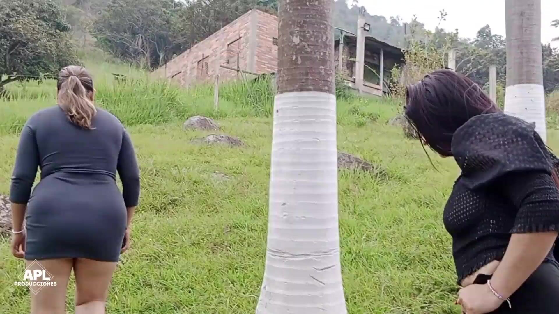 Milf lesbians take the opportunity to calm down their fever by licking their pussies outdoors. PART 1