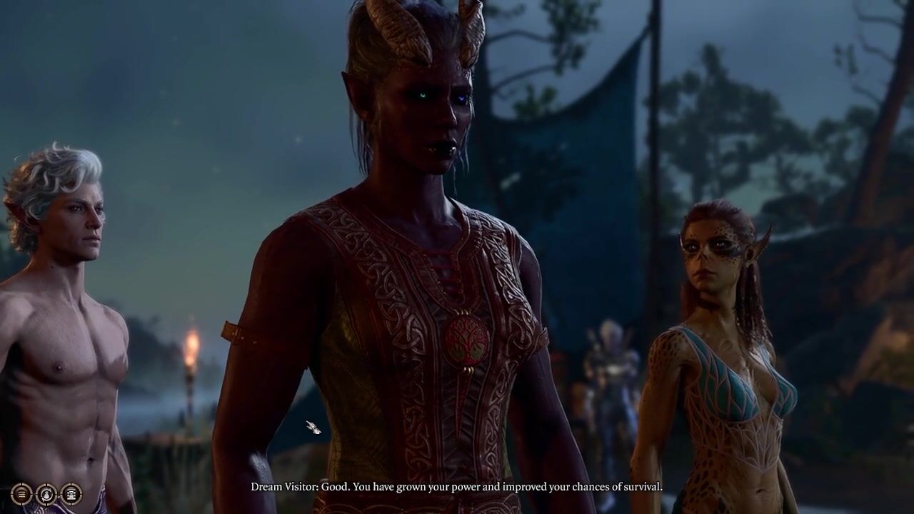 Tiefling cucks Lae'Zel at camp party with Minthara