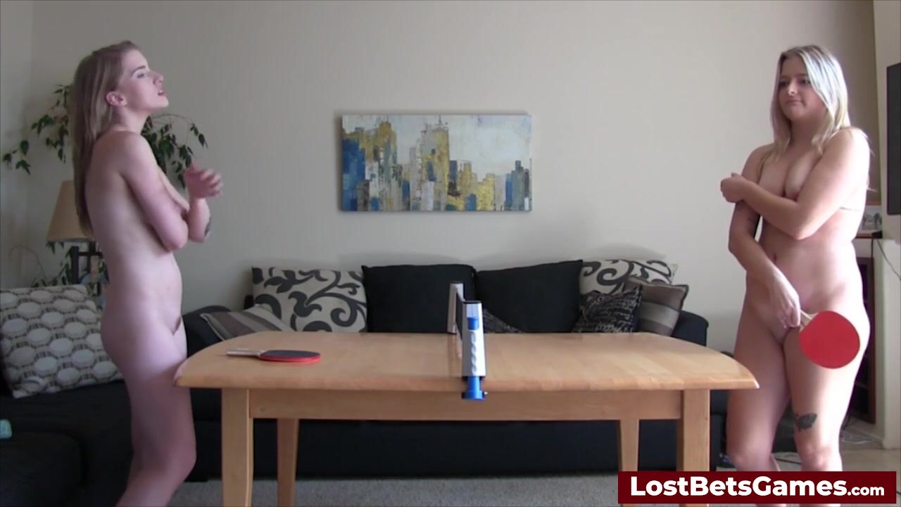 Sexy lesbians playing a strip game of Table Tennis before their hardcore party