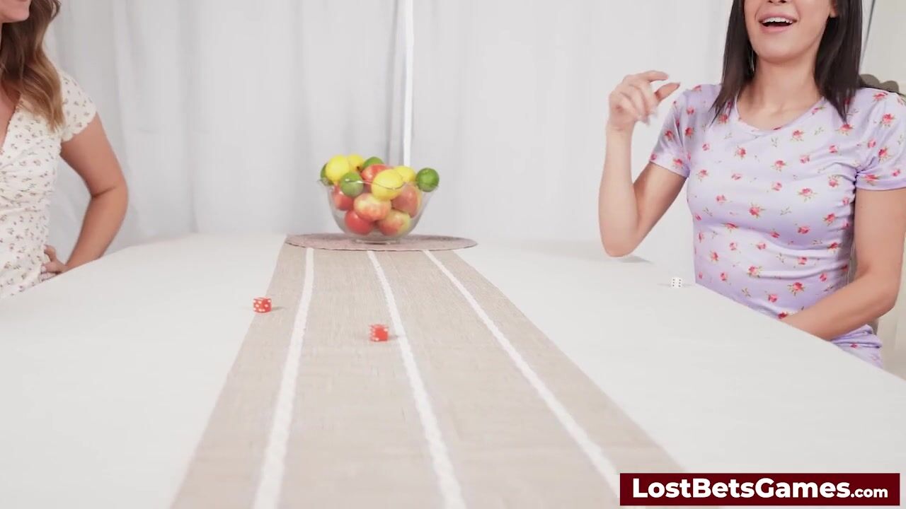 Sexy couple playing a strip dice game followed by lesbian sex