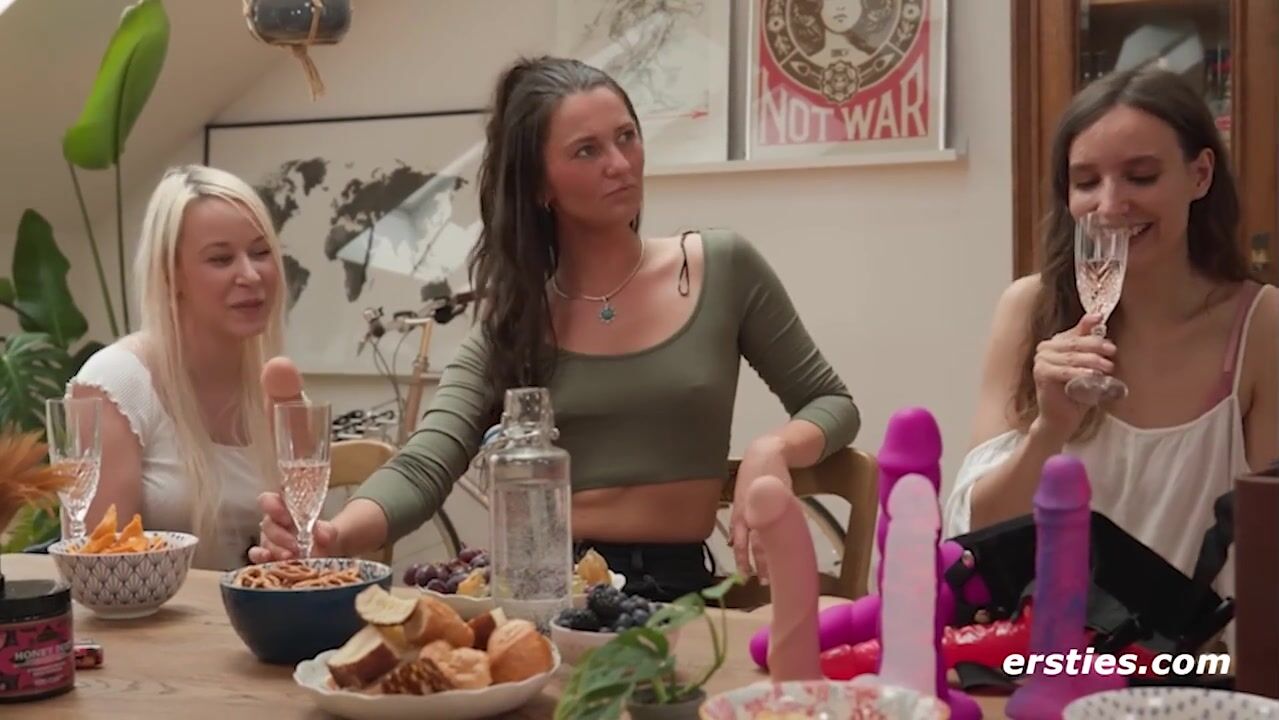 Ersties - Doppelte Dildo Penetration im lebischen Gruppensex