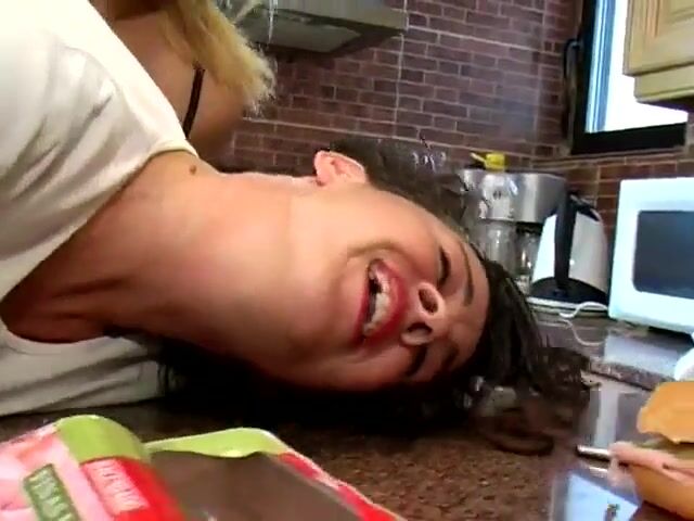 Lesbians pee in the kitchen