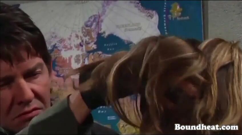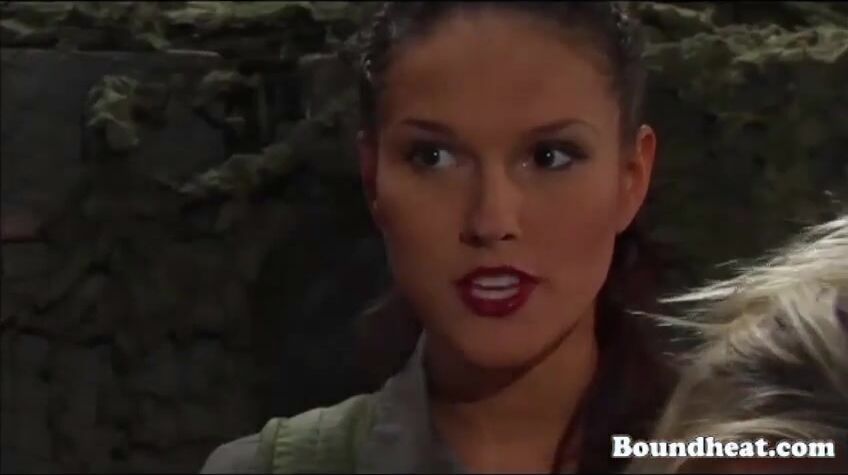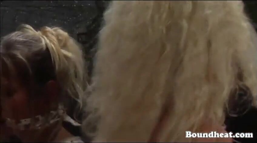 Curly Blonde Girl Tied Up To Frame And Whipped