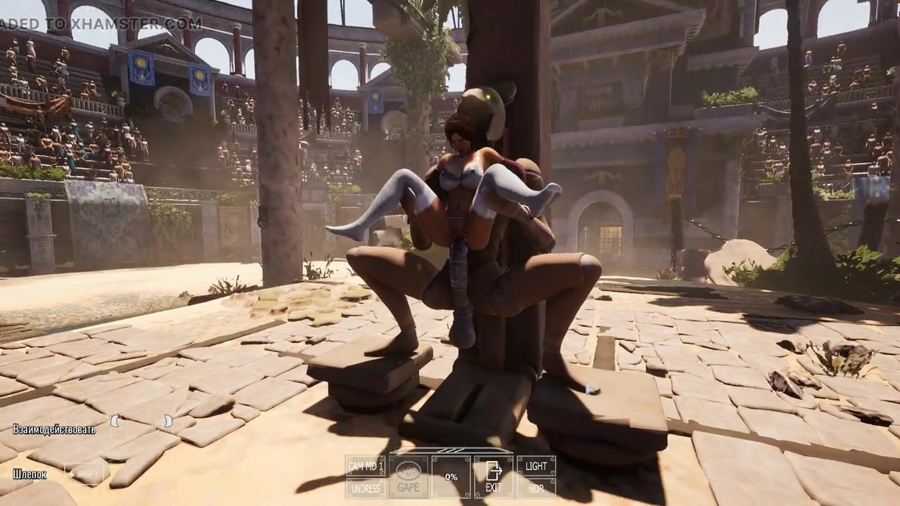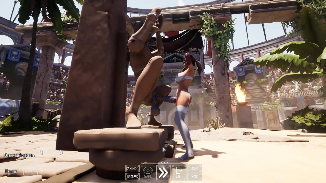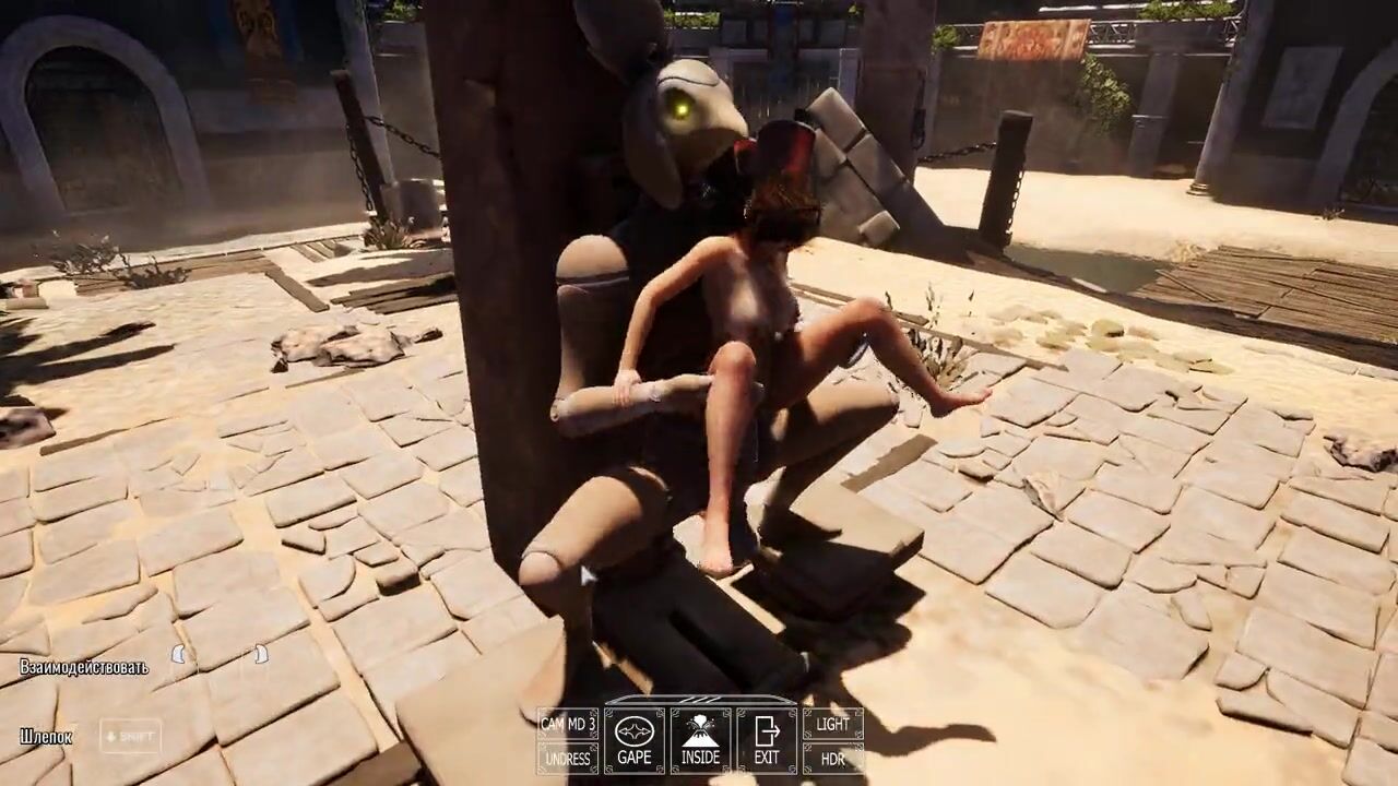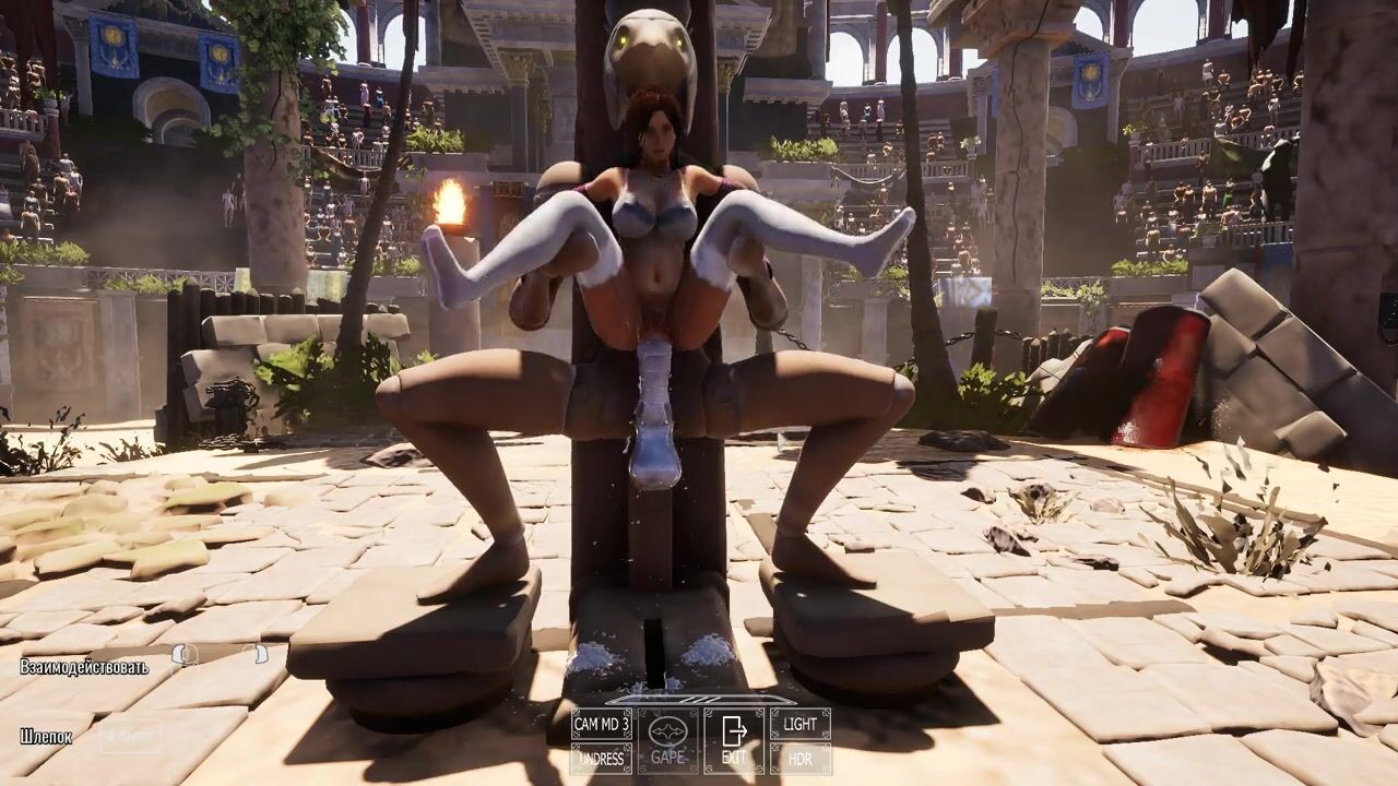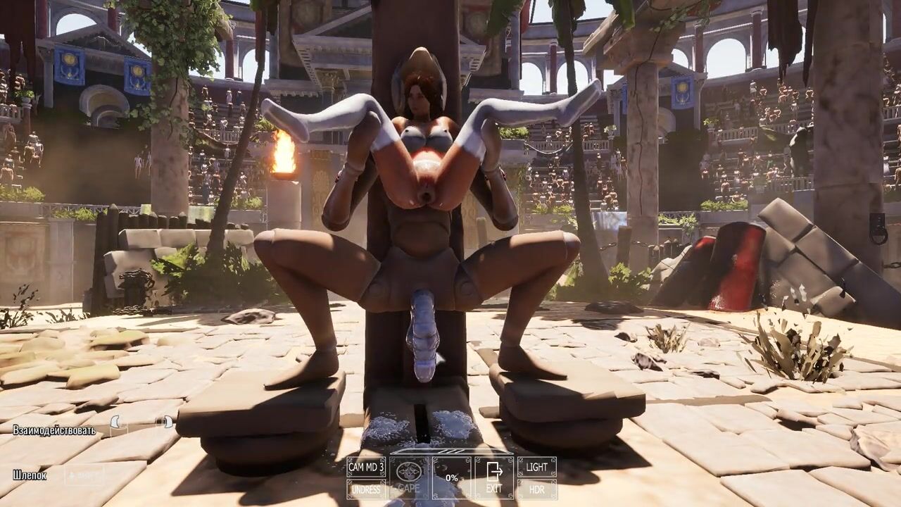 A statue is fucking Lara Croft while 1,000 viewers are watching.