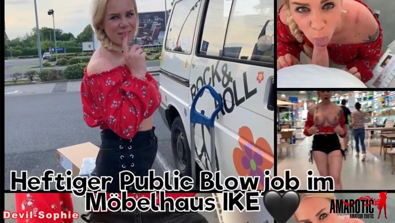 Devil-Sophie: Heavy public blowjob in the furniture store