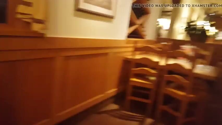 teen getting her pussy licked in public in a restaurant.
