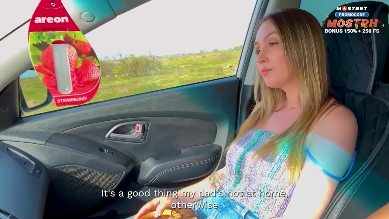 Hot mom (stepmom) fucks in the car with her son's classmate