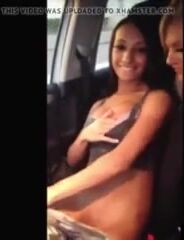 Sexy girls teasing inside the driving car