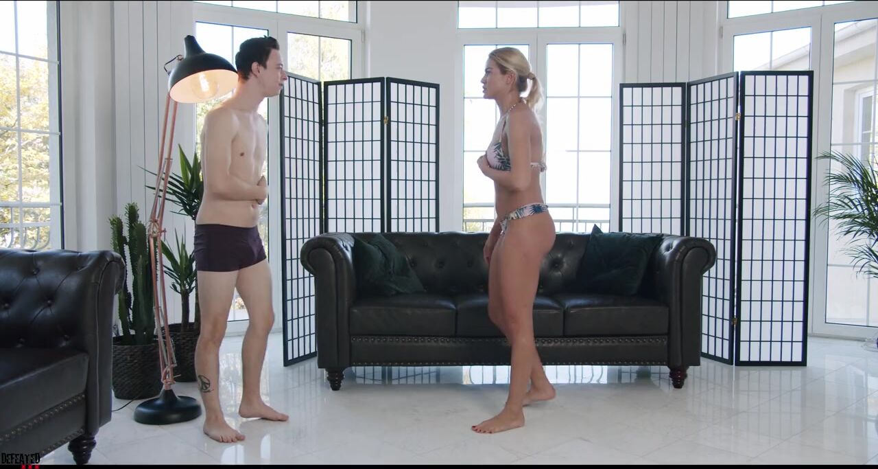 Nerd guy humiliated by hot Cherry Kiss and cum in her mouth