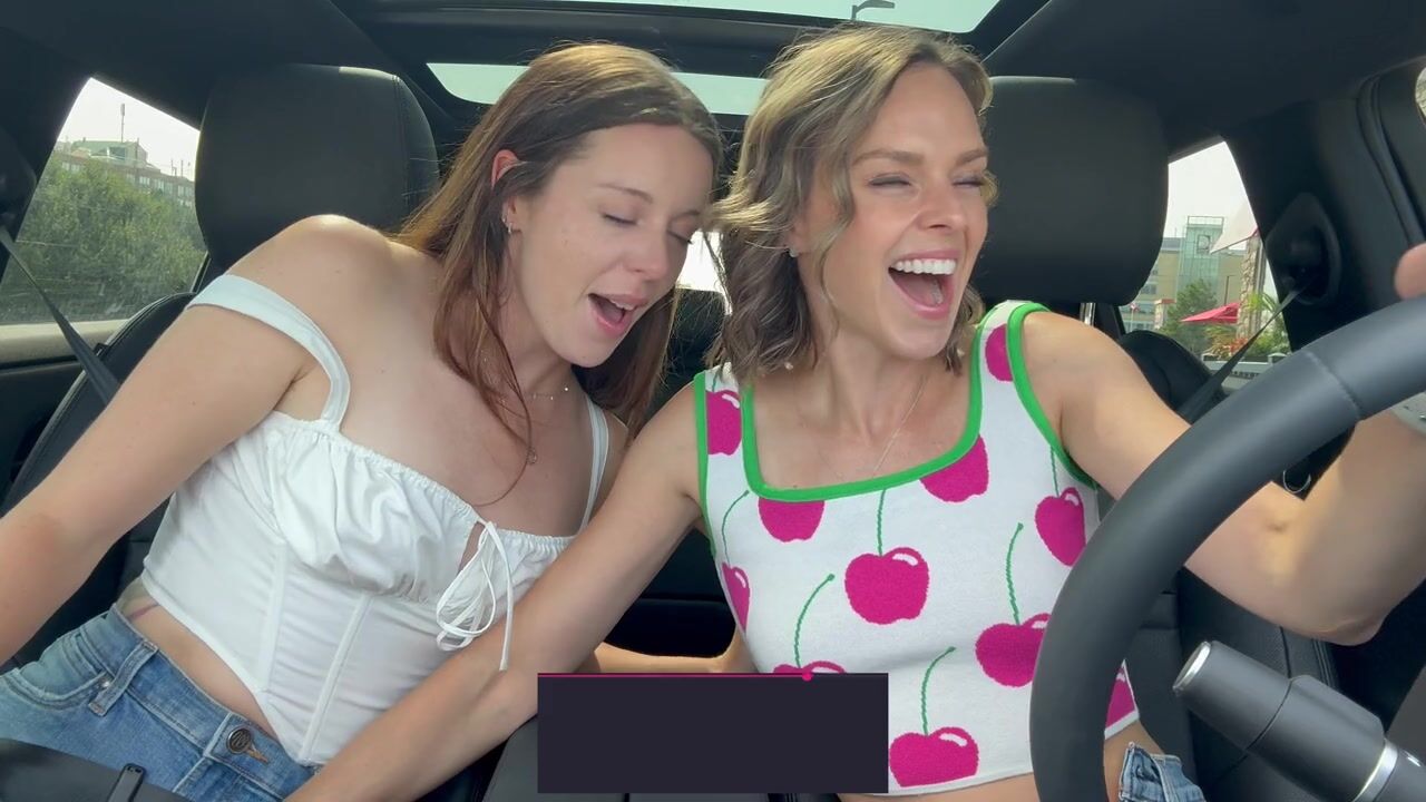 Nadia Foxx & Serenity Cox using Lush remote controlled vibrators in public drive thru & cumming hard