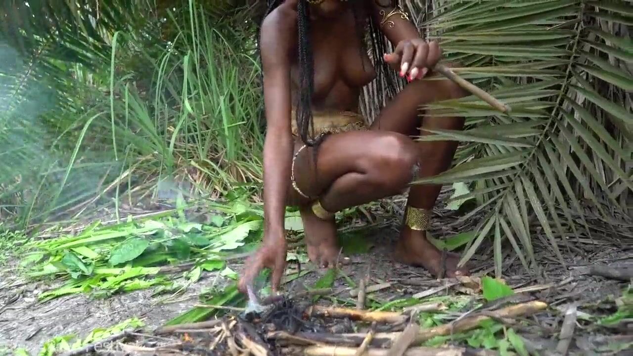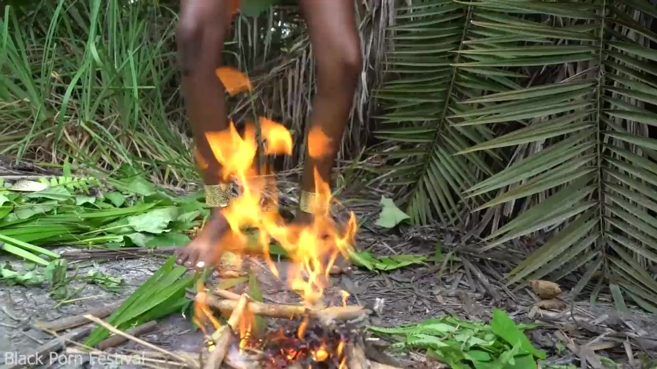 Hot African native woman cooking in the jungle