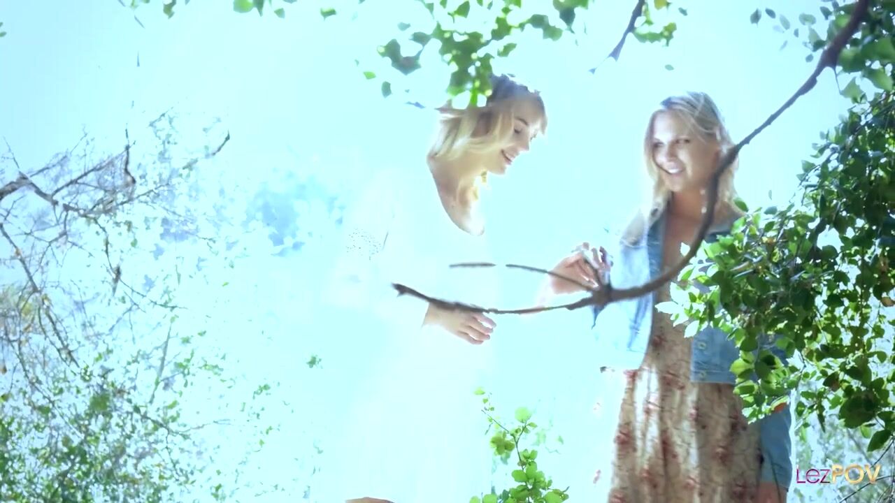 2 blond divas indulge in a lesbo session during their walk in the woods