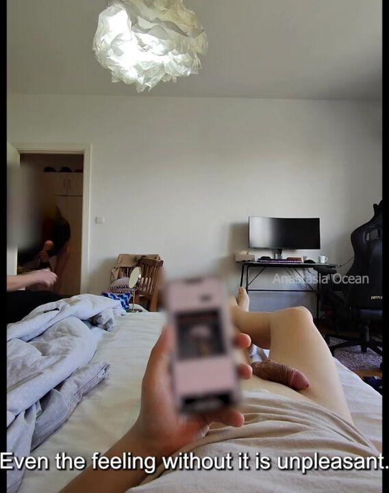 My step mama and I are getting willing for going out and my spouse is relaxing and showing off his weenie.