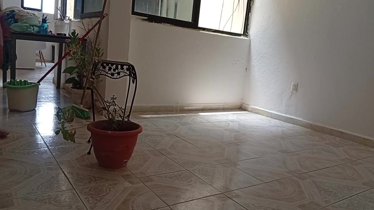 Mama takes off anything and stays in her belt to do the cleaning