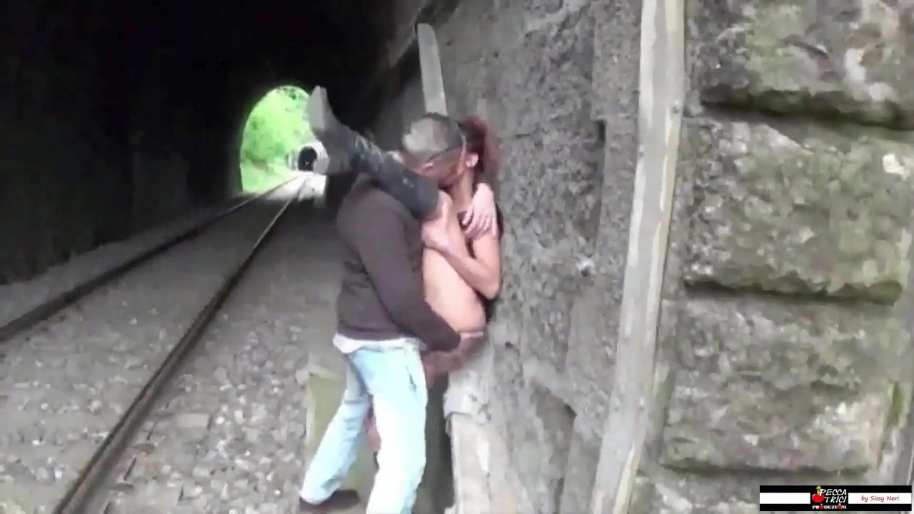 Screwed between the railway tracks this babe gets a large swallow of cum