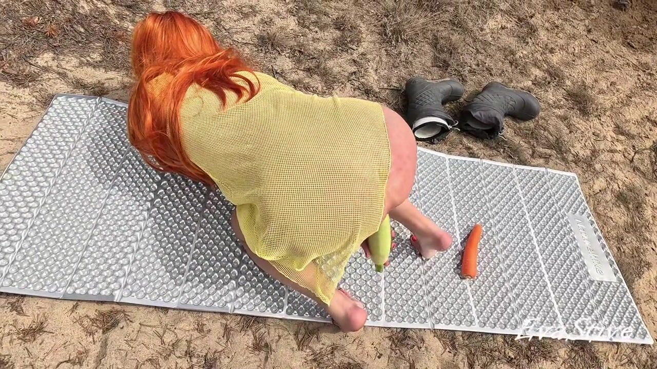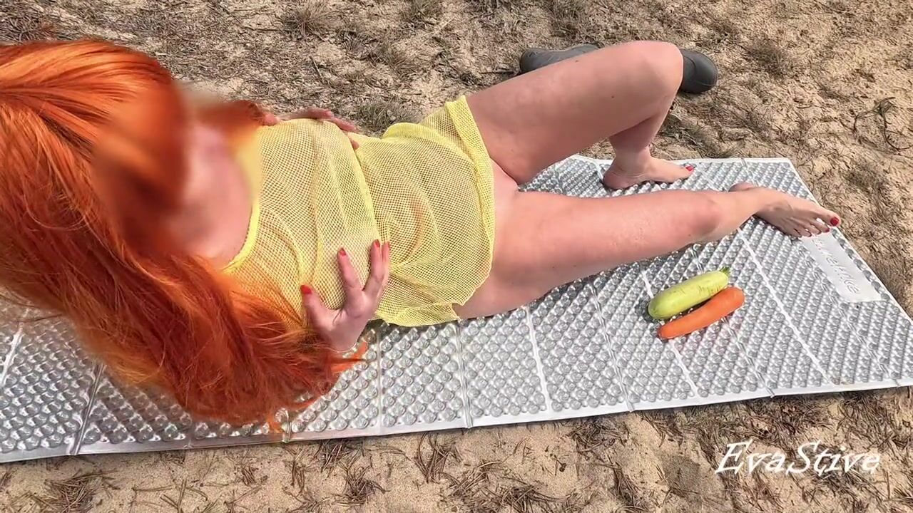 multiorgasm from vegetables of a red-haired wench in nature