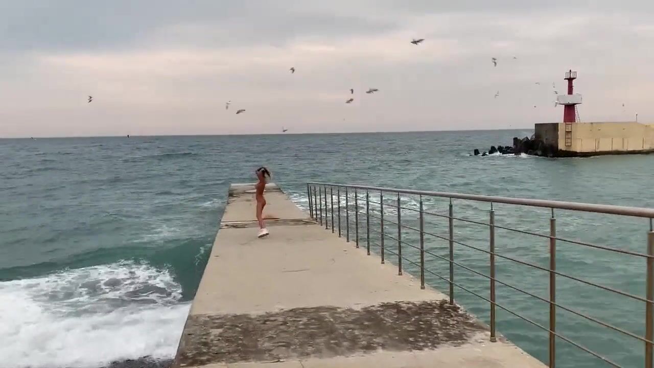 ГОЛАЯ ДЕВУШКА ГУЛЯЕТ ПО ПЛЯЖУ В СОЧИ