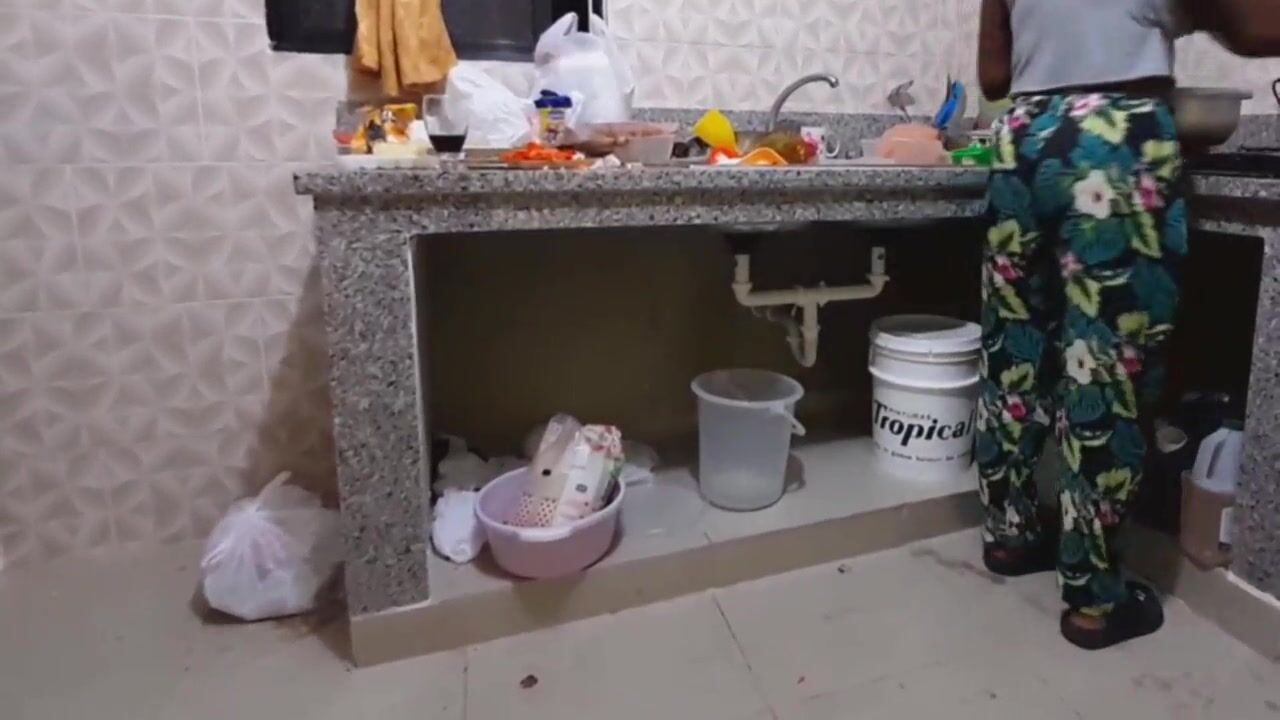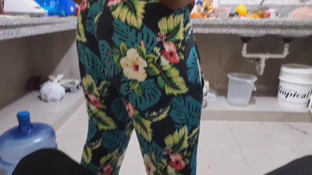 Housekeeper shows me her ass cheeks in the kitchen - Ebony butt housewife - Hot maid