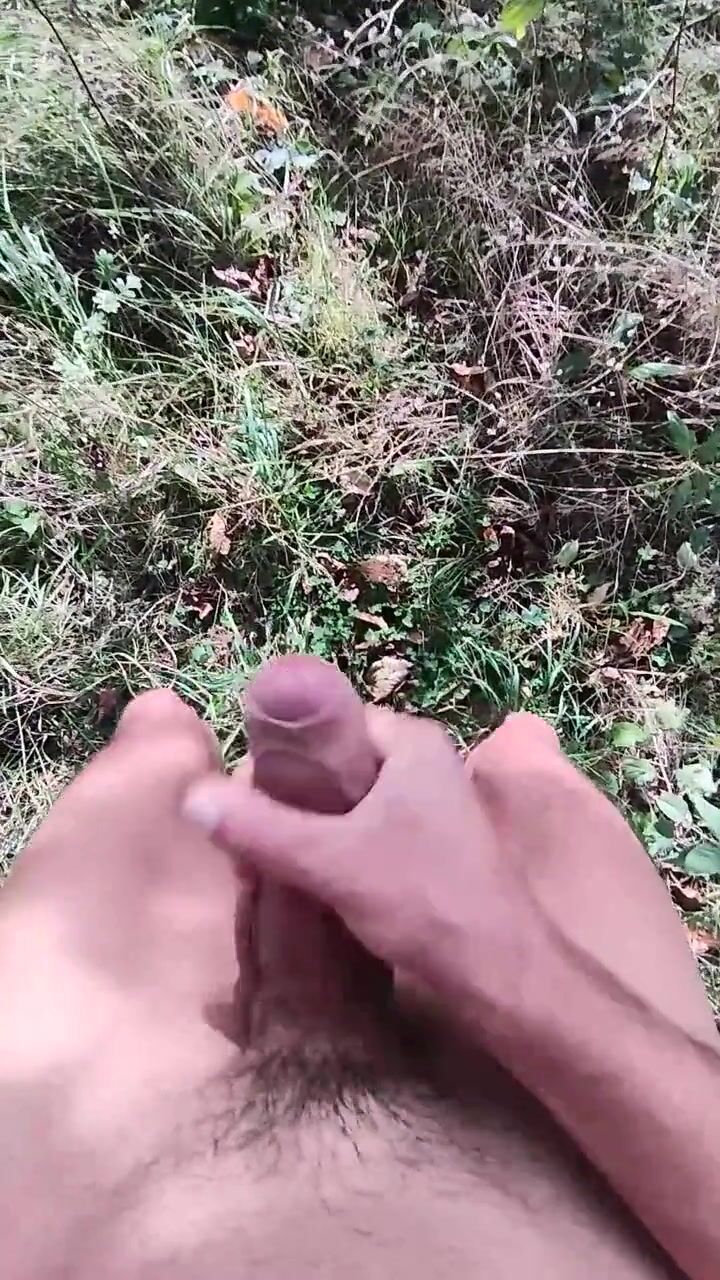Stripped hiking JO, cum and clean the pipe with warm pee