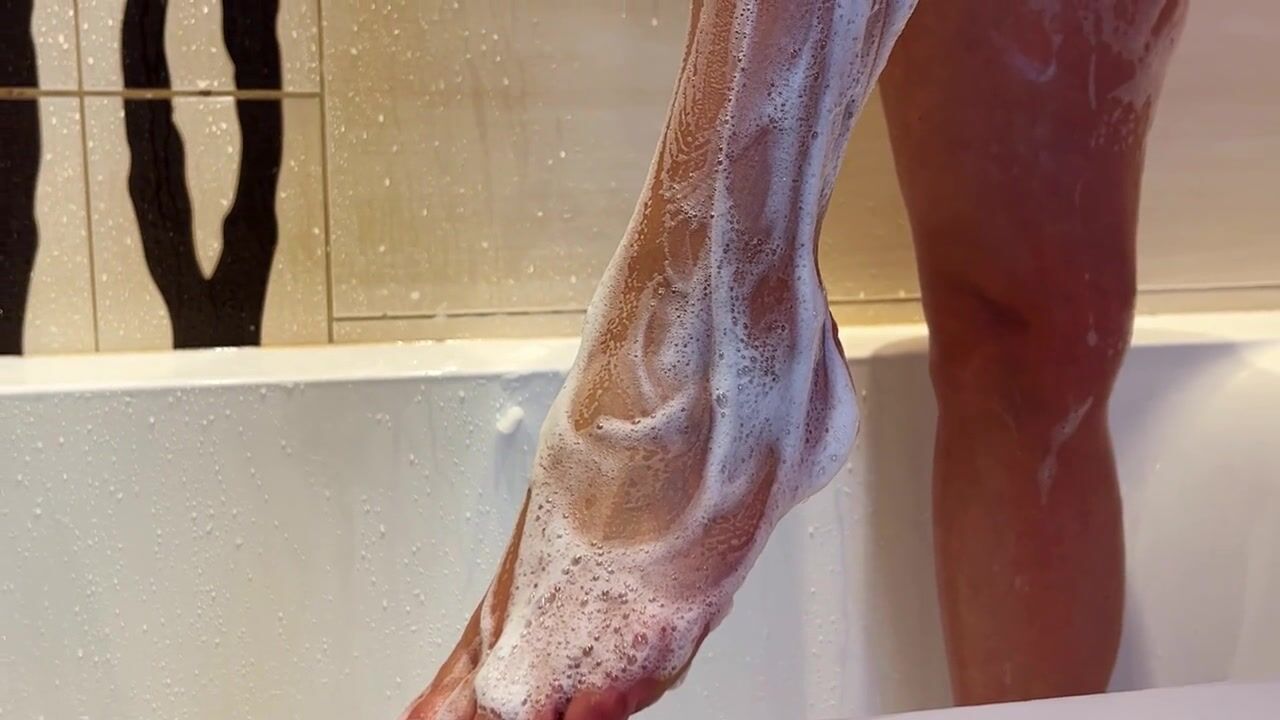 Juicy Footjob in bath - twat in foam