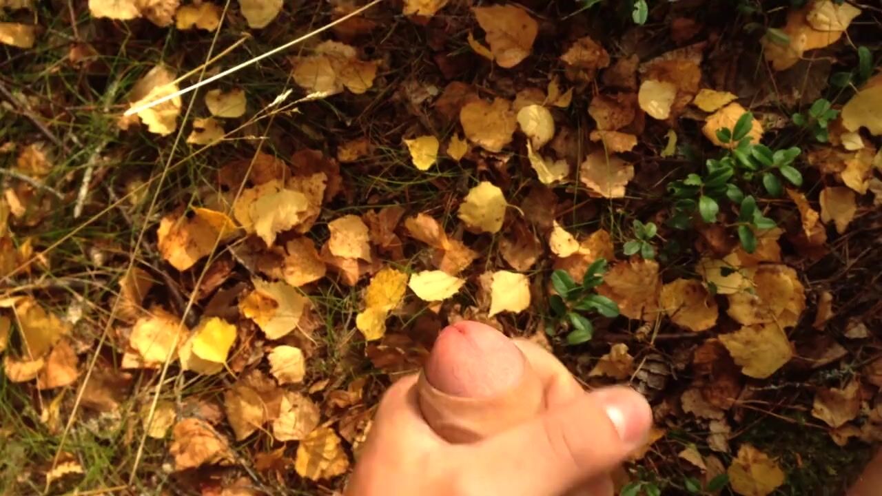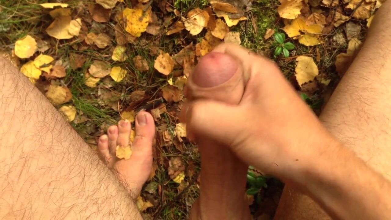 hunk with a large weenie discharges three streams of cum in the forest