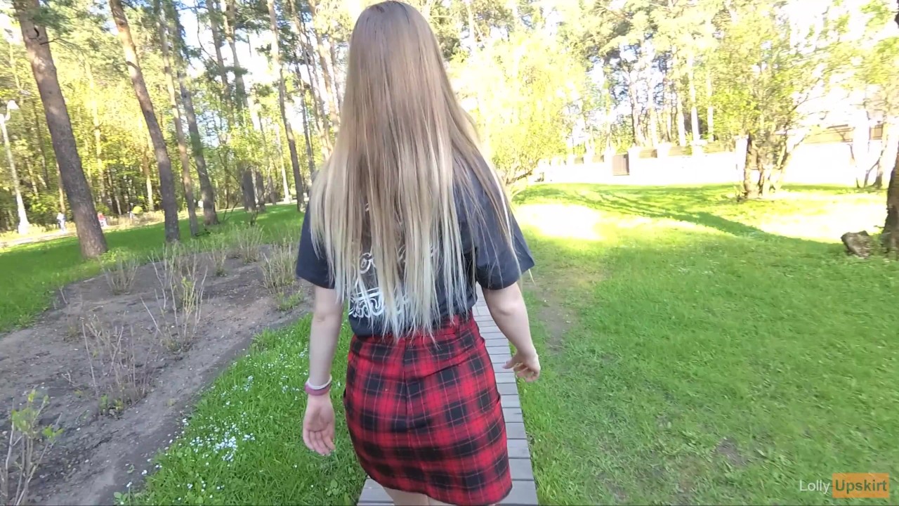 Nasty hotty in miniskirt no pants flashing in the park (public upskirt)