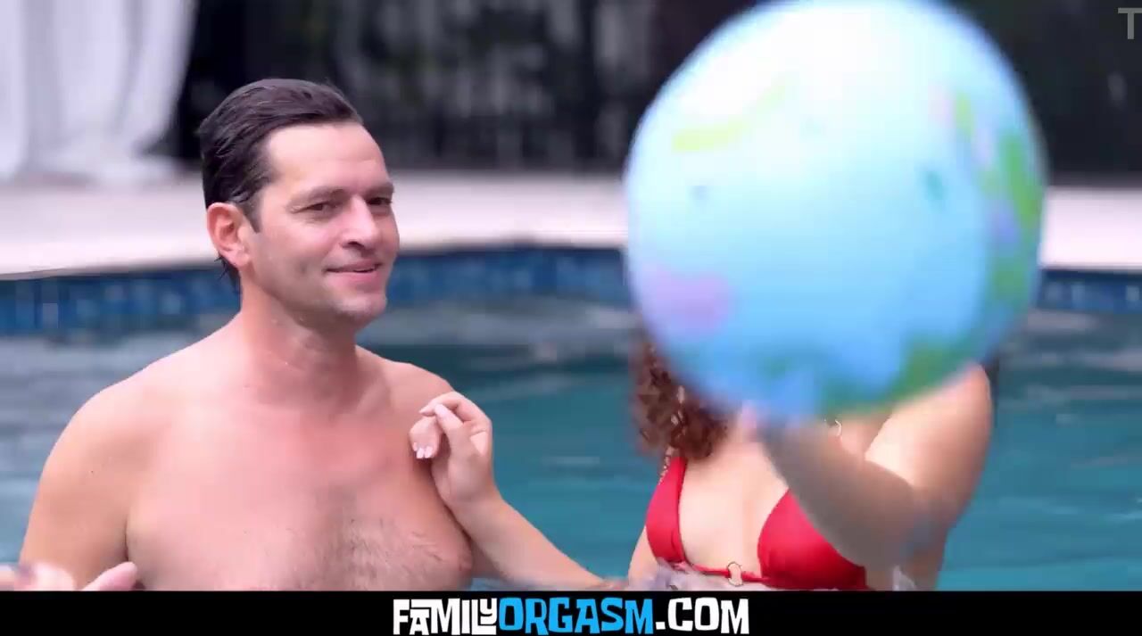 Charming Hoe Teen Stepdaughter Catch their Parents Attention whilst Playing in the Pool