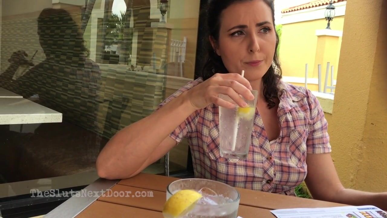 Making her cum her publicly with remote dildo below the table