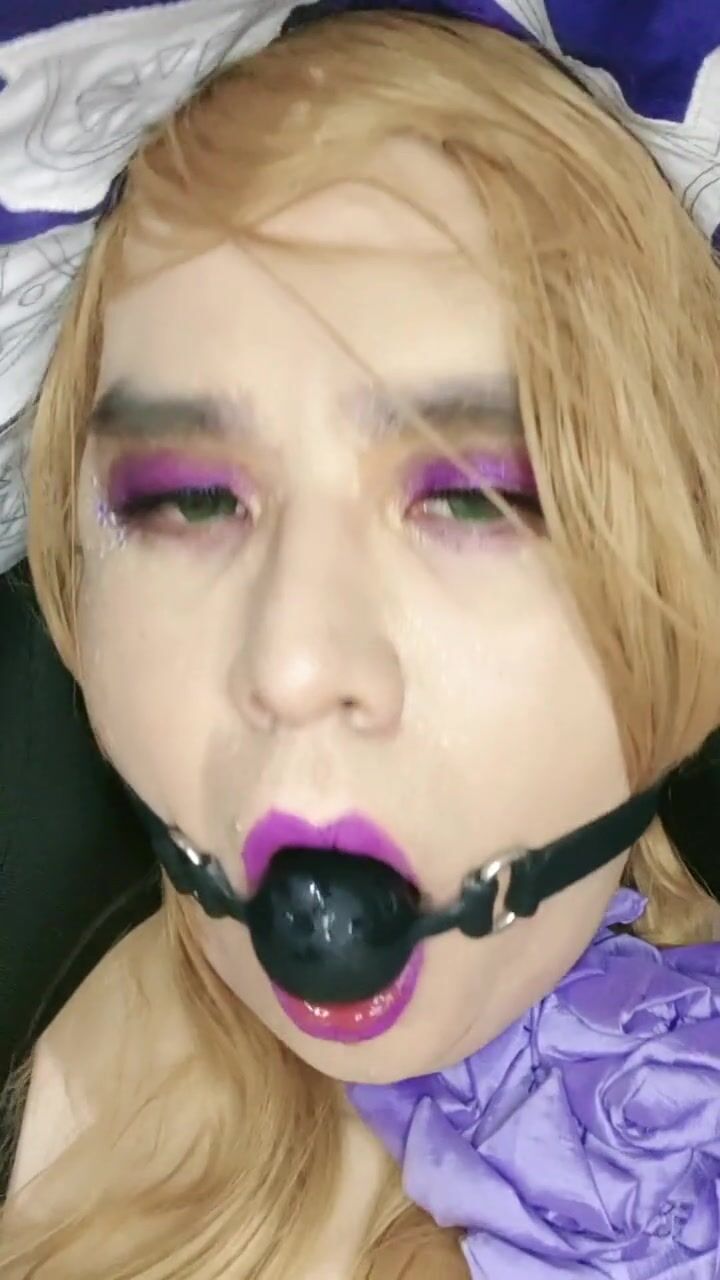 Lisa Crossplayer, masturbating, gagging and puting on chastity cage