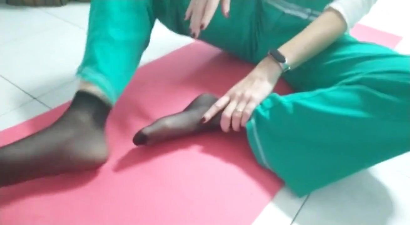 Covid time. Yoga gym in nylon socket at home using my xbox