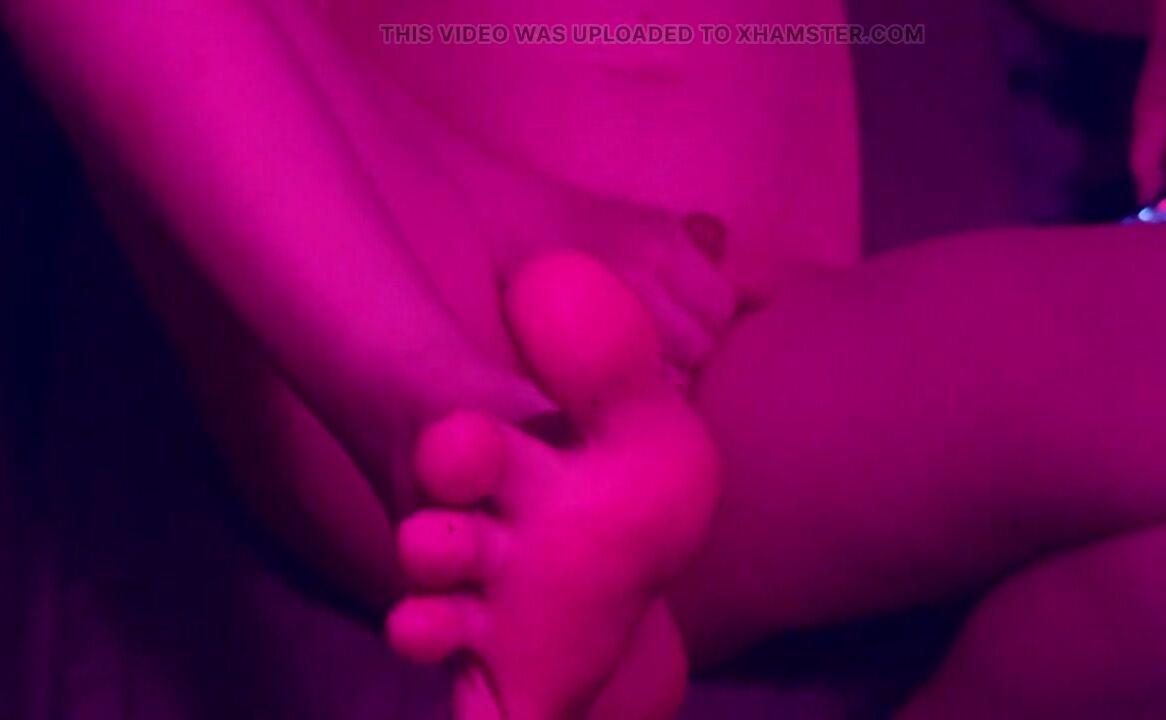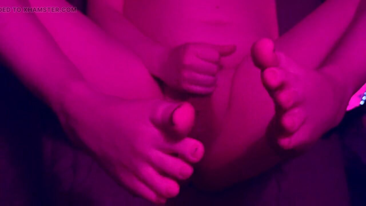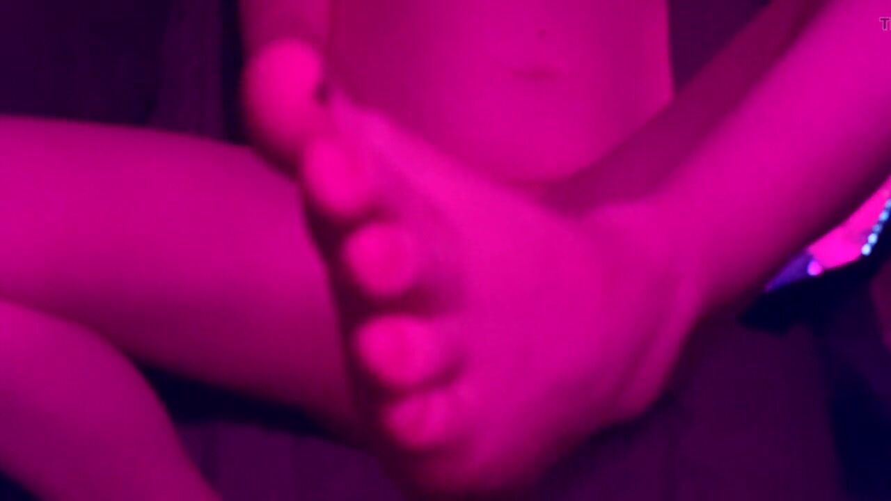 Trans cutie strokes her weenie and puts her feet in your face