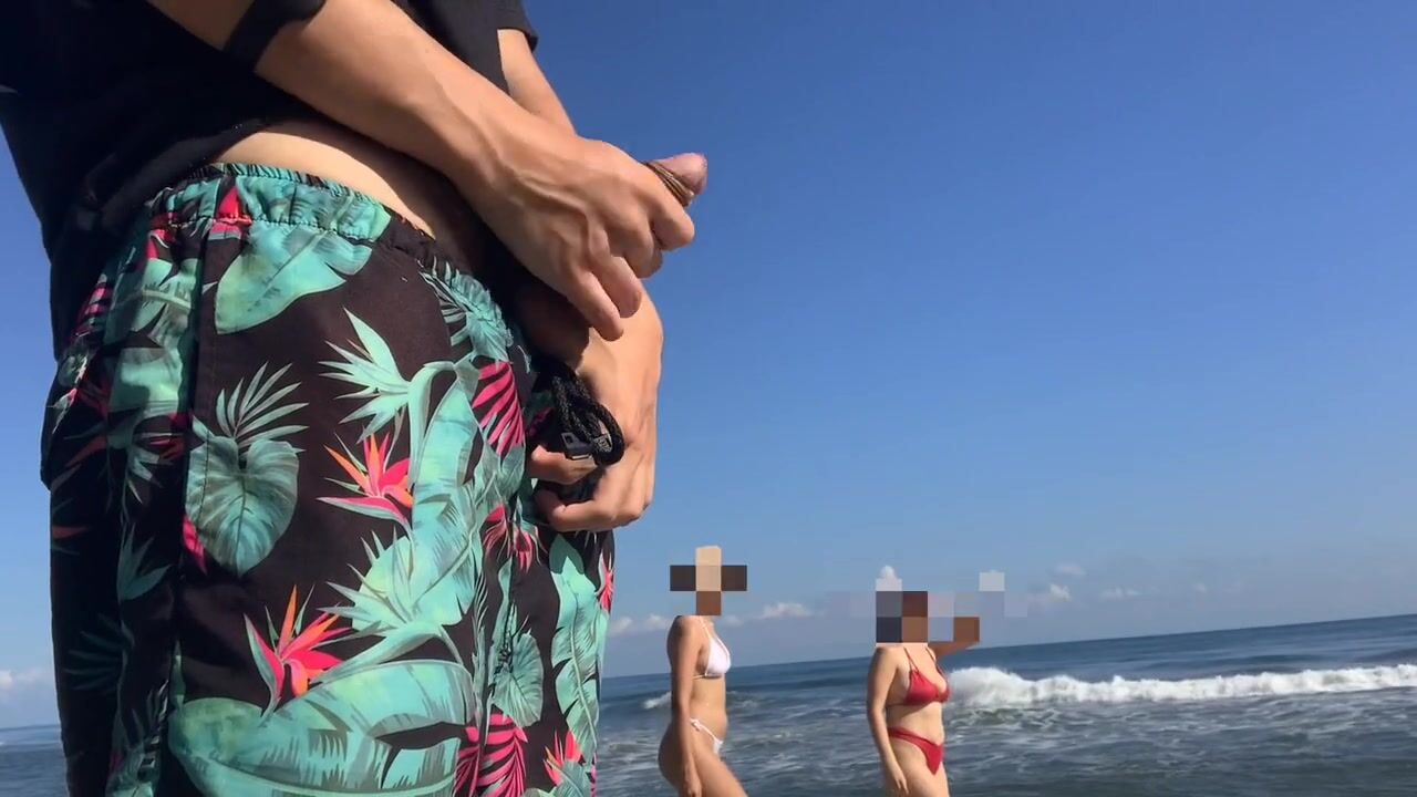 Public flash knob on the beach in front of 2 concupiscent cuties who want my dong