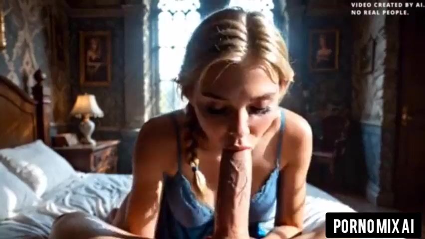 Youthful golden-haired giving oral pleasure