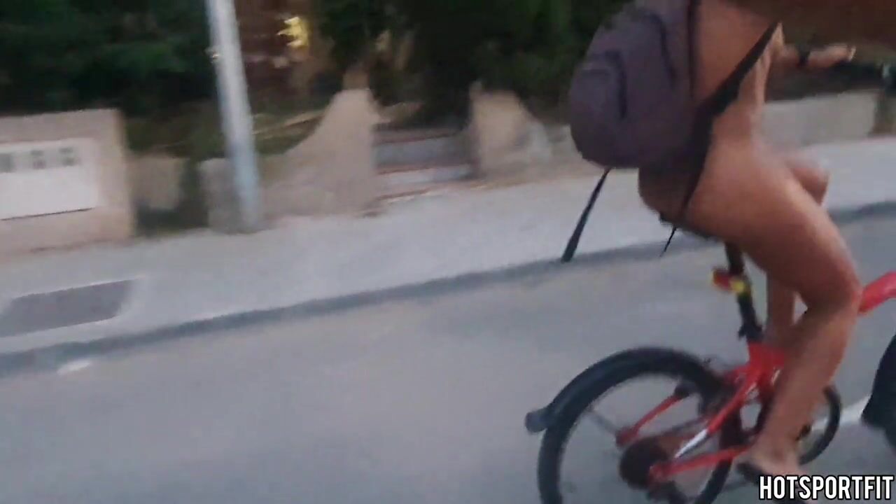 Wild Angel Biking Undressed on Public Road: Flaunting Her Body and Vagina!
