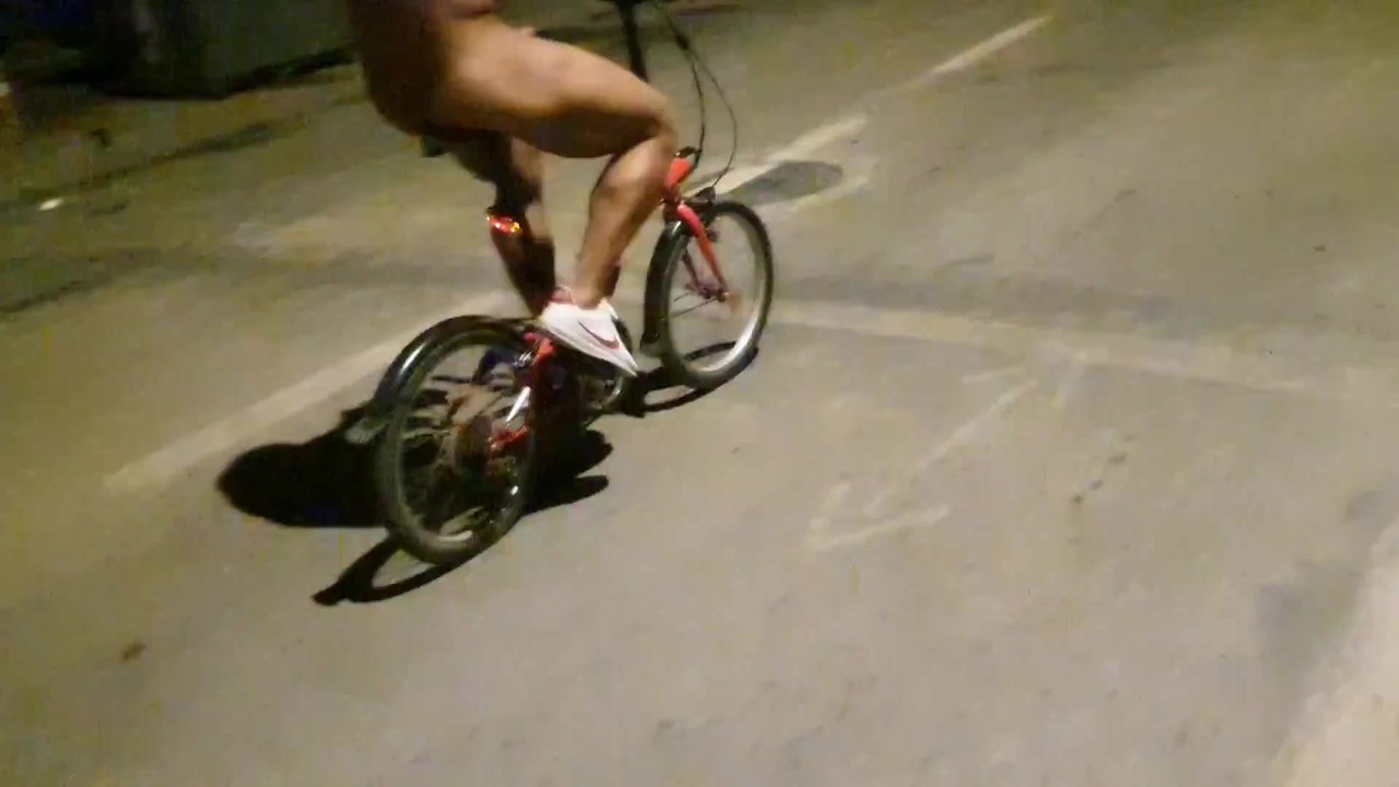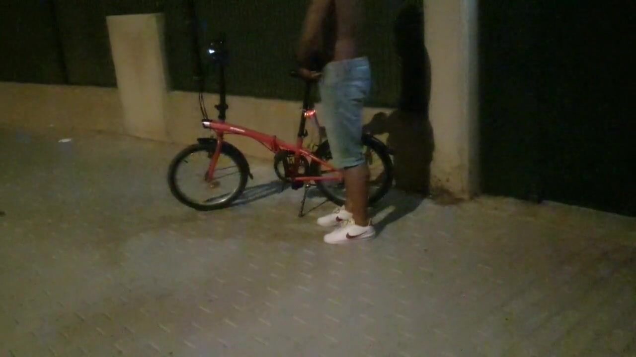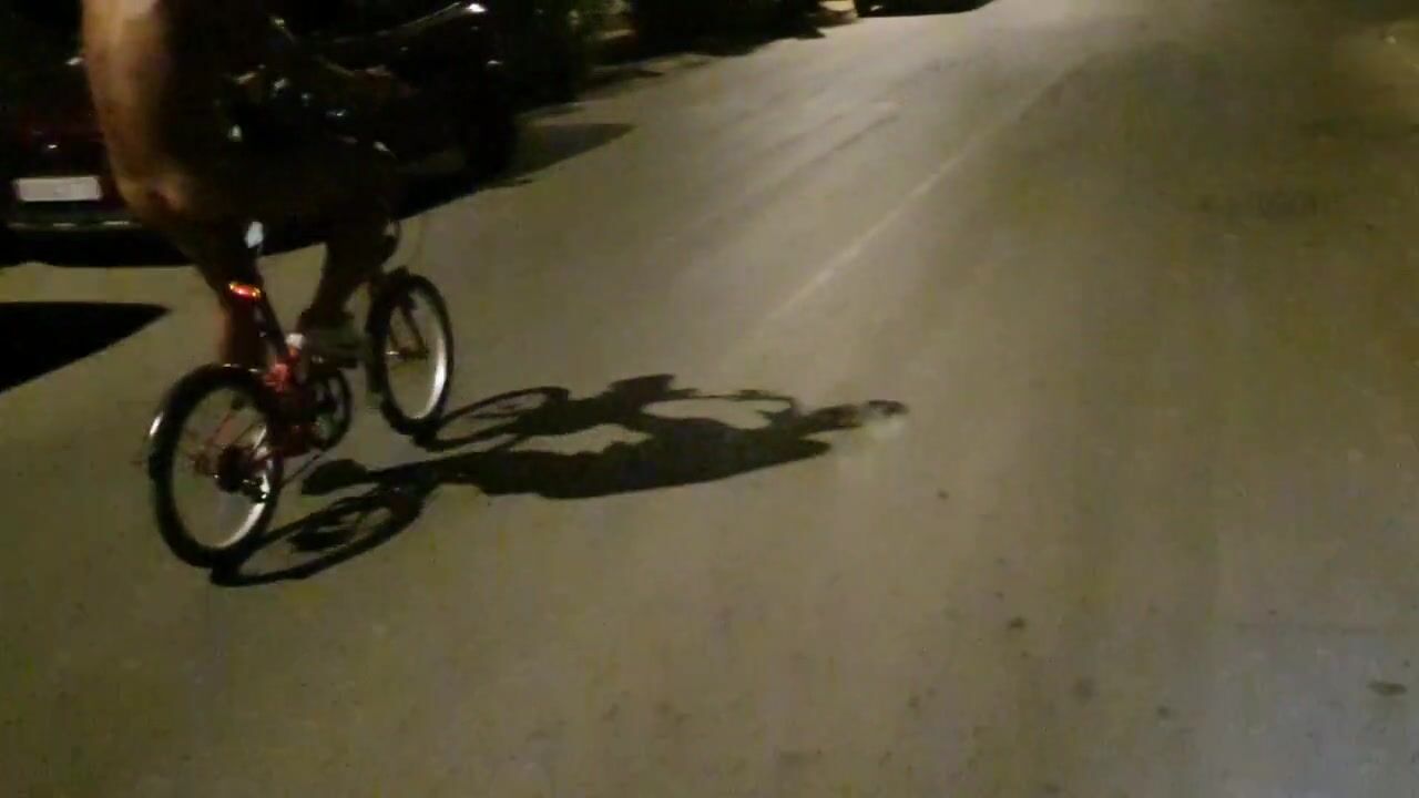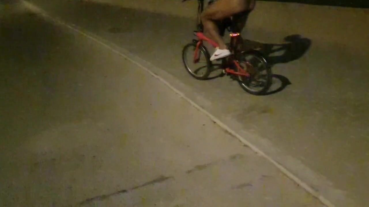 Hot chap disrobes on a public street and rides a bike nude touching his weenie - risky