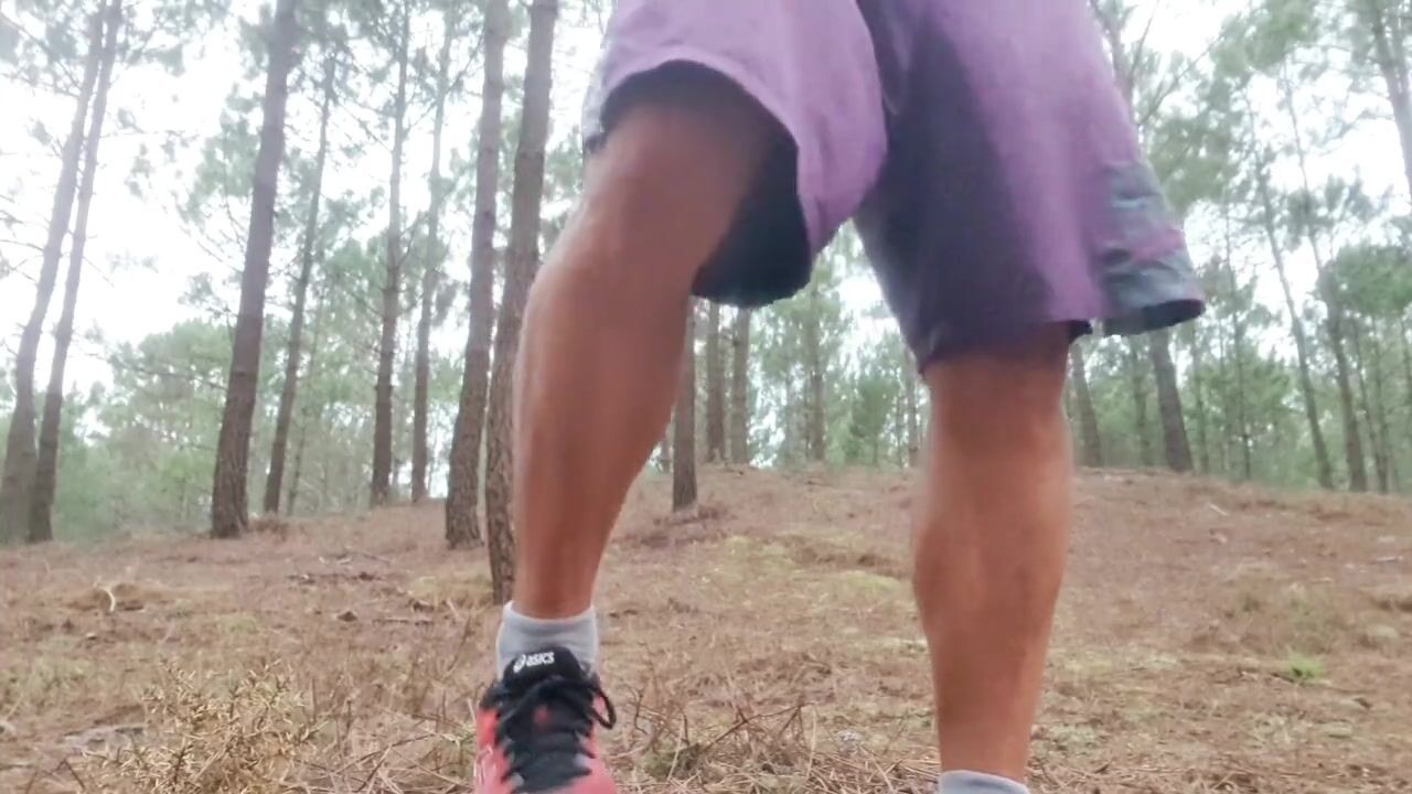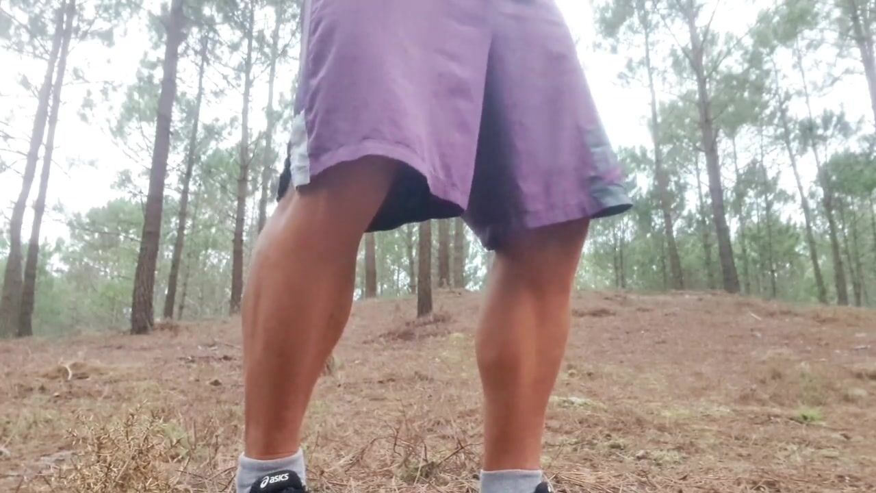 Jacking off and cumming in public in the woods - nearly caught