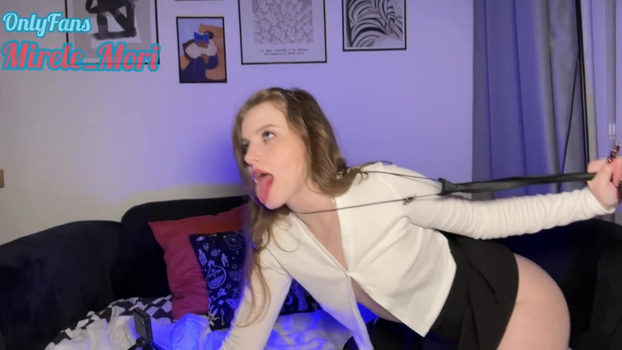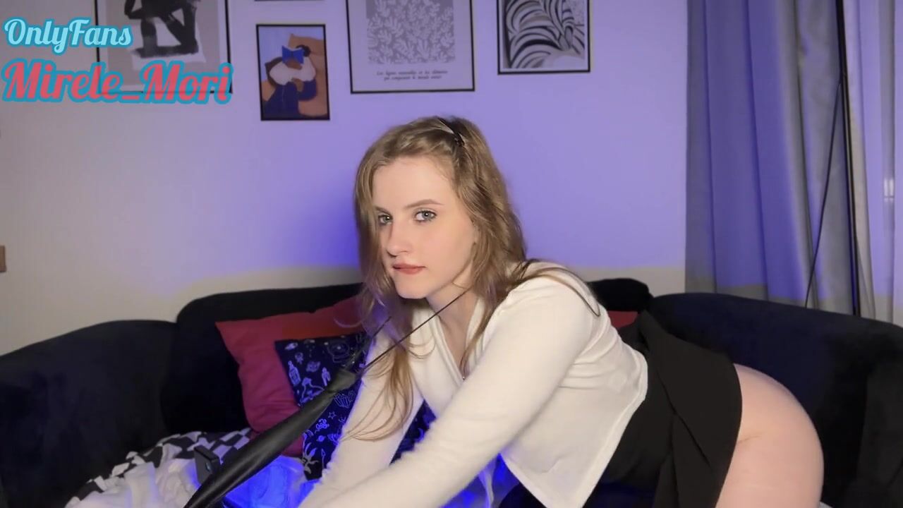 After classes this babe didnt put off her uniform but was out of pants