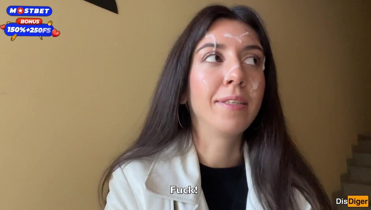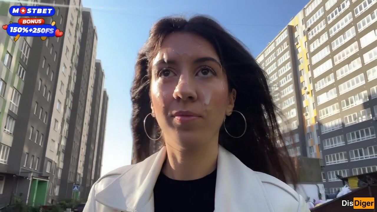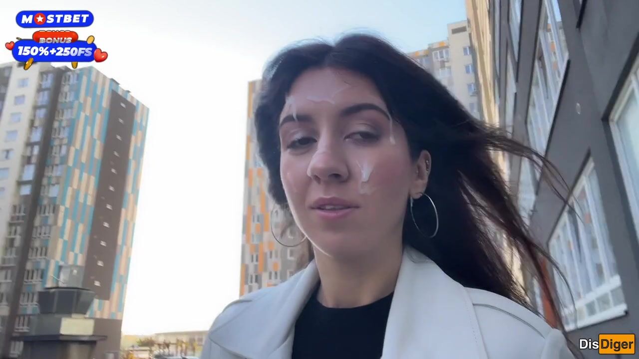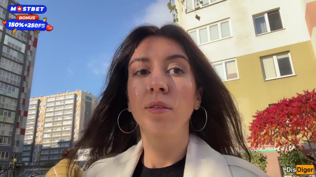 Wife Cheats her Spouse in the Entrance and walks on Public with Cum on Face - Cumwalk