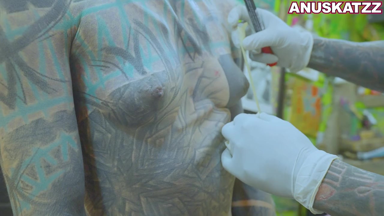 Tattoo model Anuskatzz gets teat piercings during the time that anal screw hardcore bizarre coarse sex SADOMASOCHISM fetish