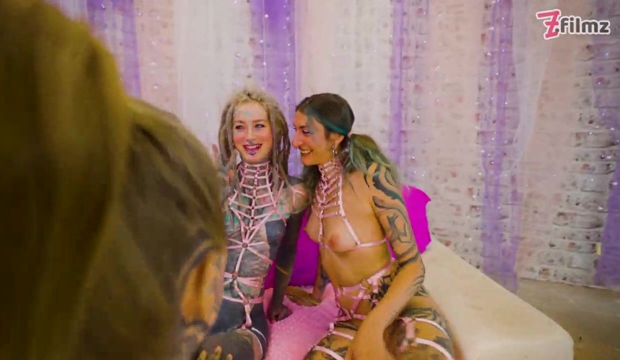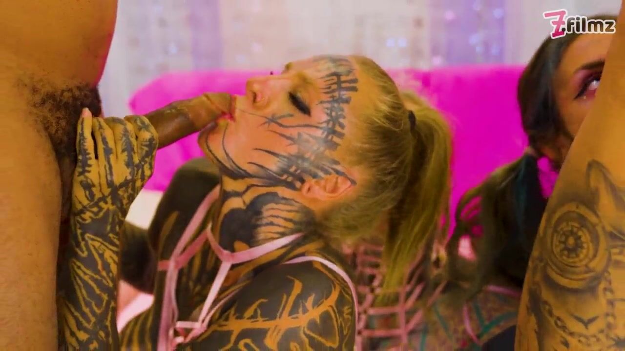 Heavily Tattooed Chicks Share BBC & White Ramrod in Group Mayhem