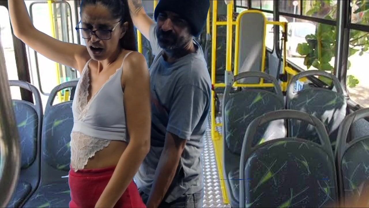 Estudante deixa homem esfregar pau em sua bunda no ônibus e fode em público!