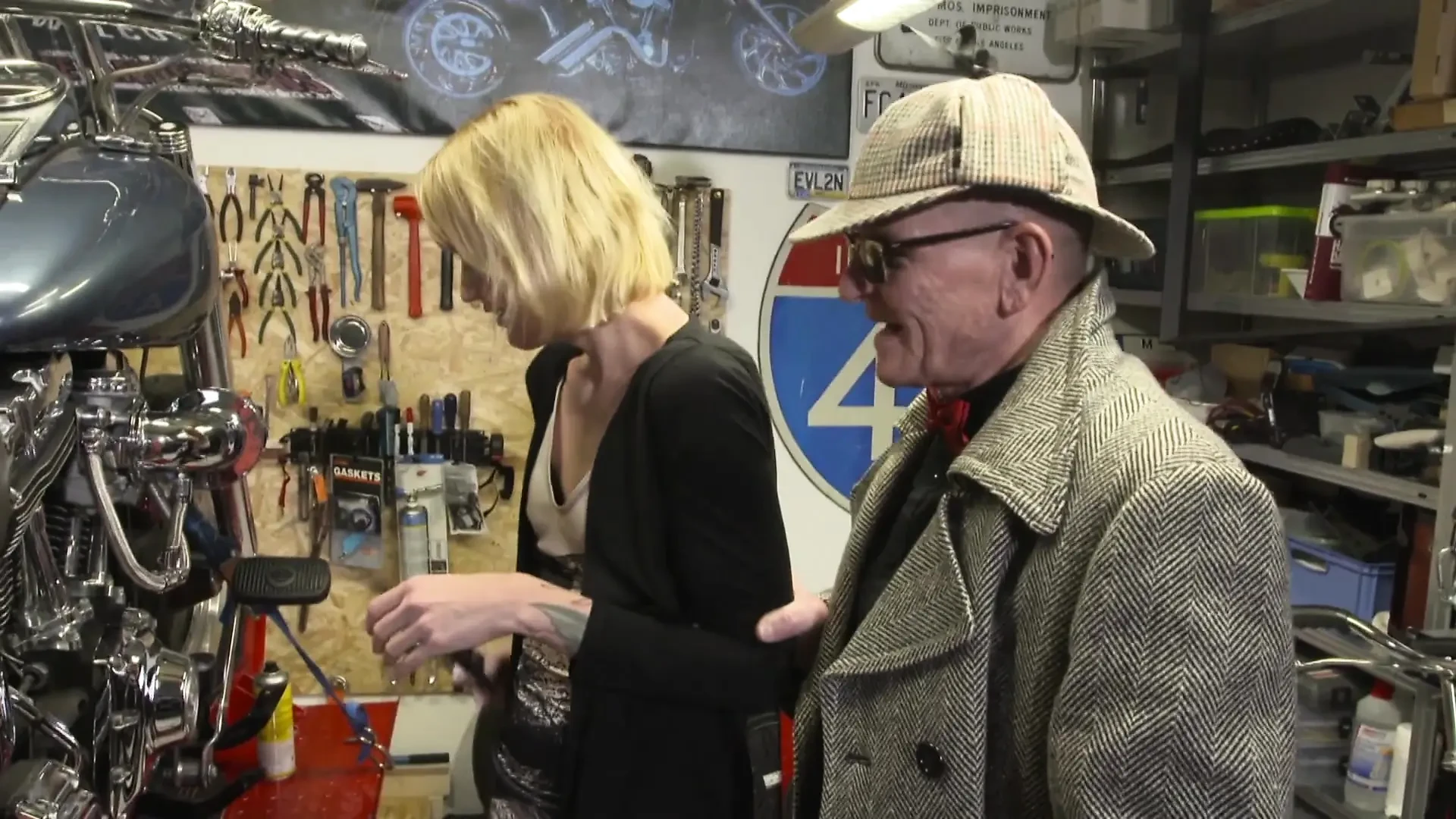 Hawt tattooed blond enjoying in hard bang on the floor