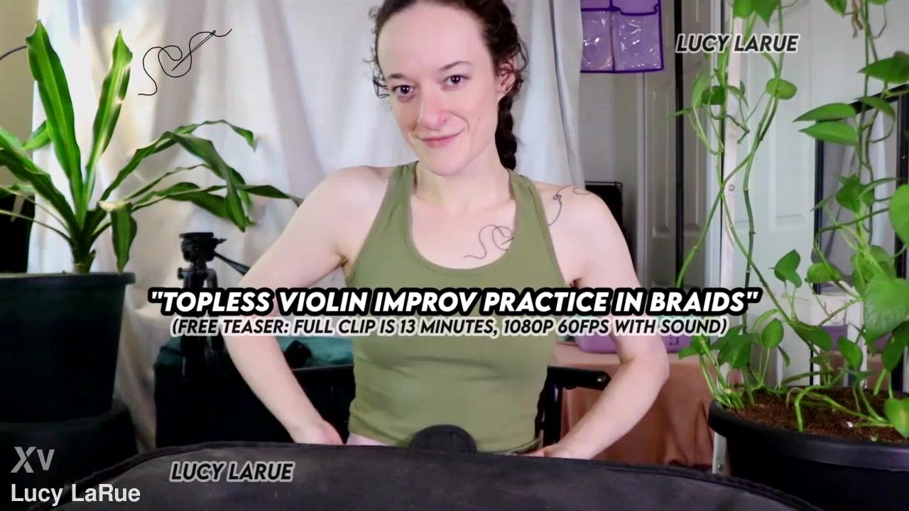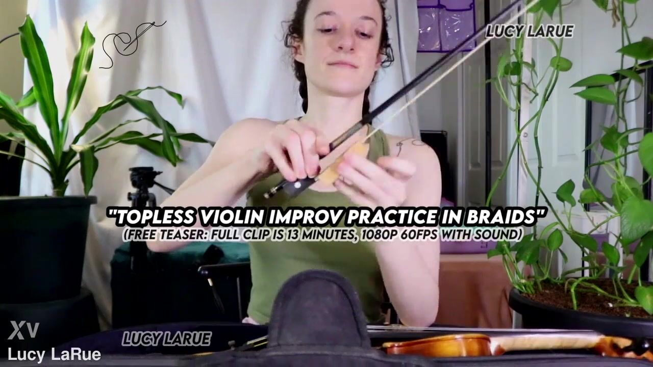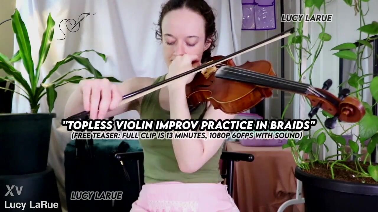 "Topless Violin Improv Practice In Braids"