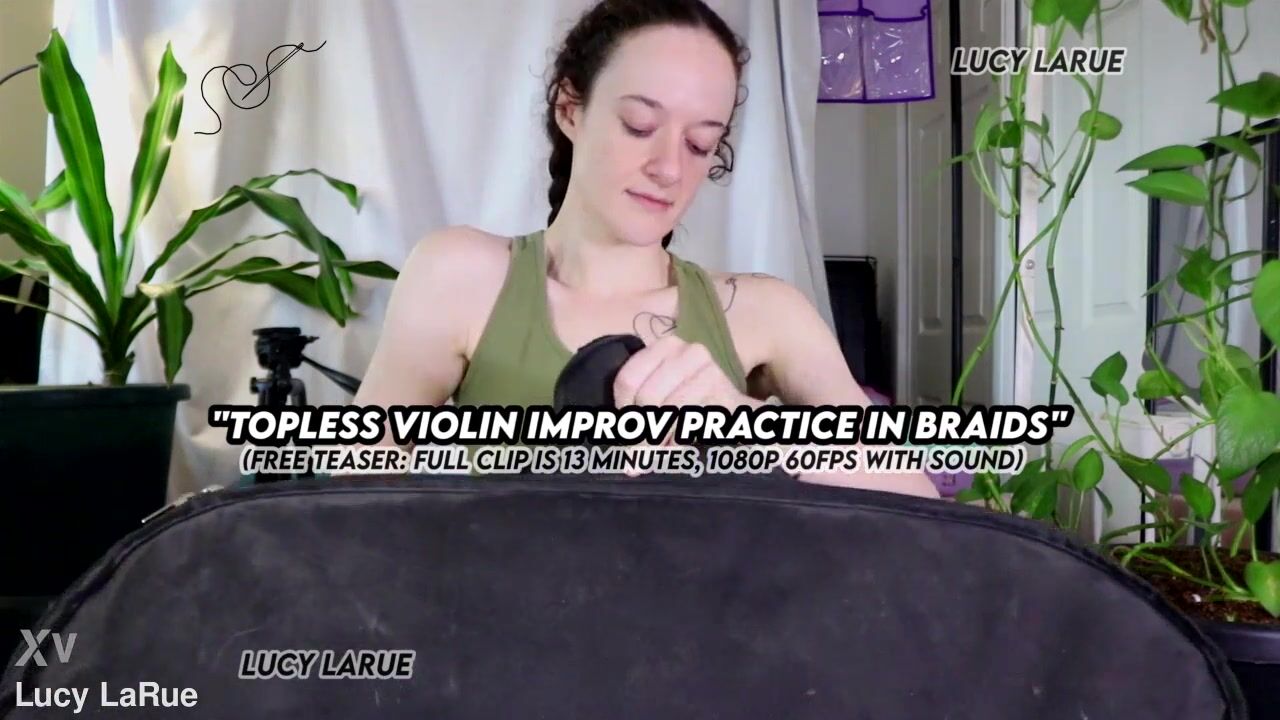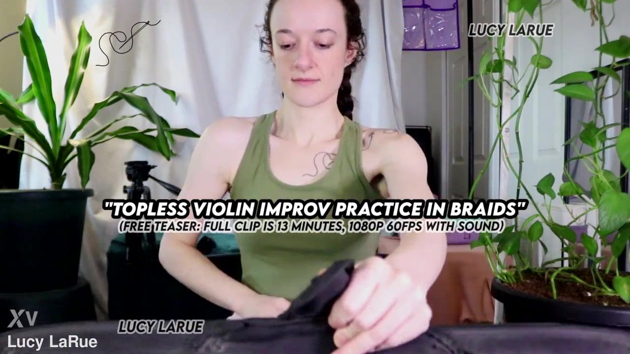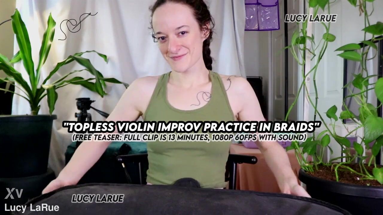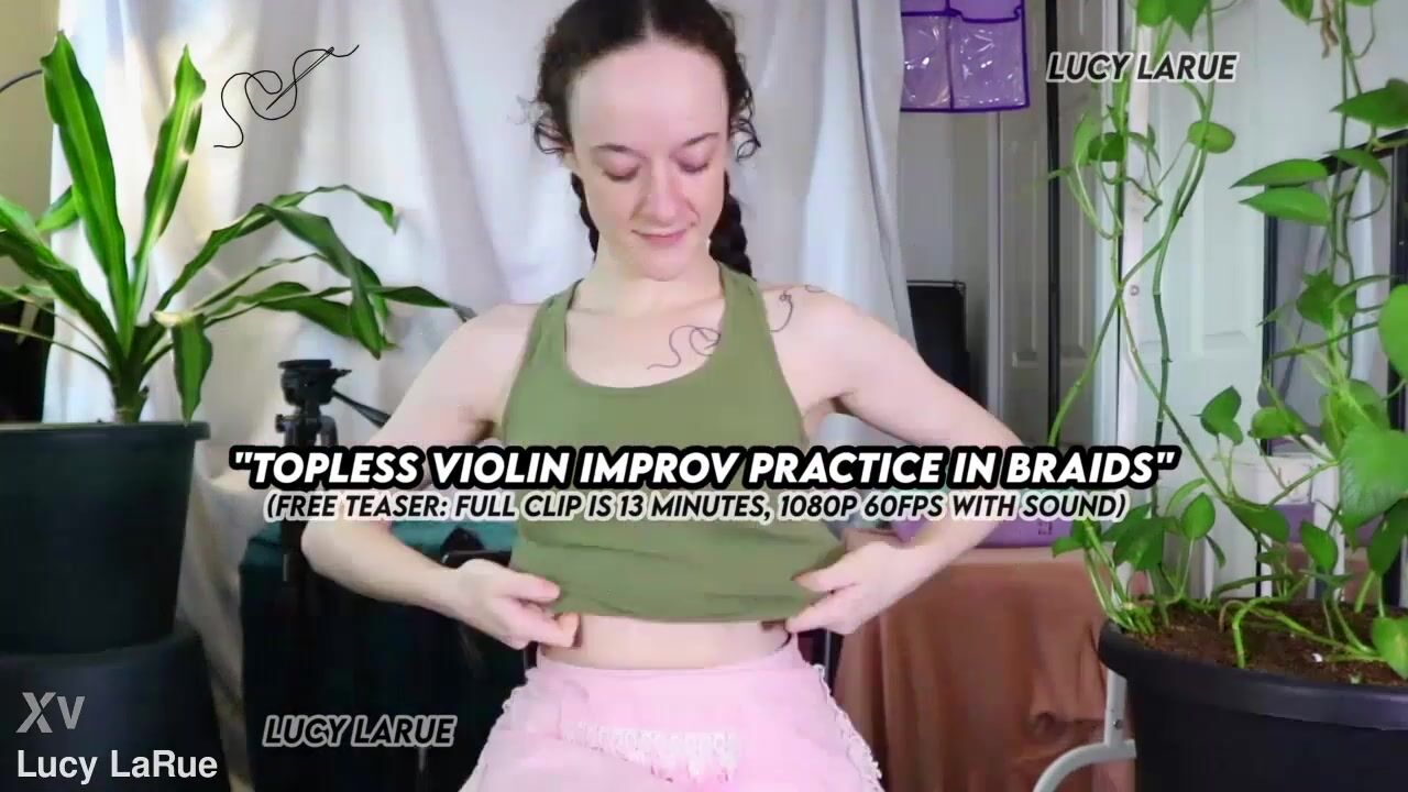 "Topless Violin Improv Practice In Braids"