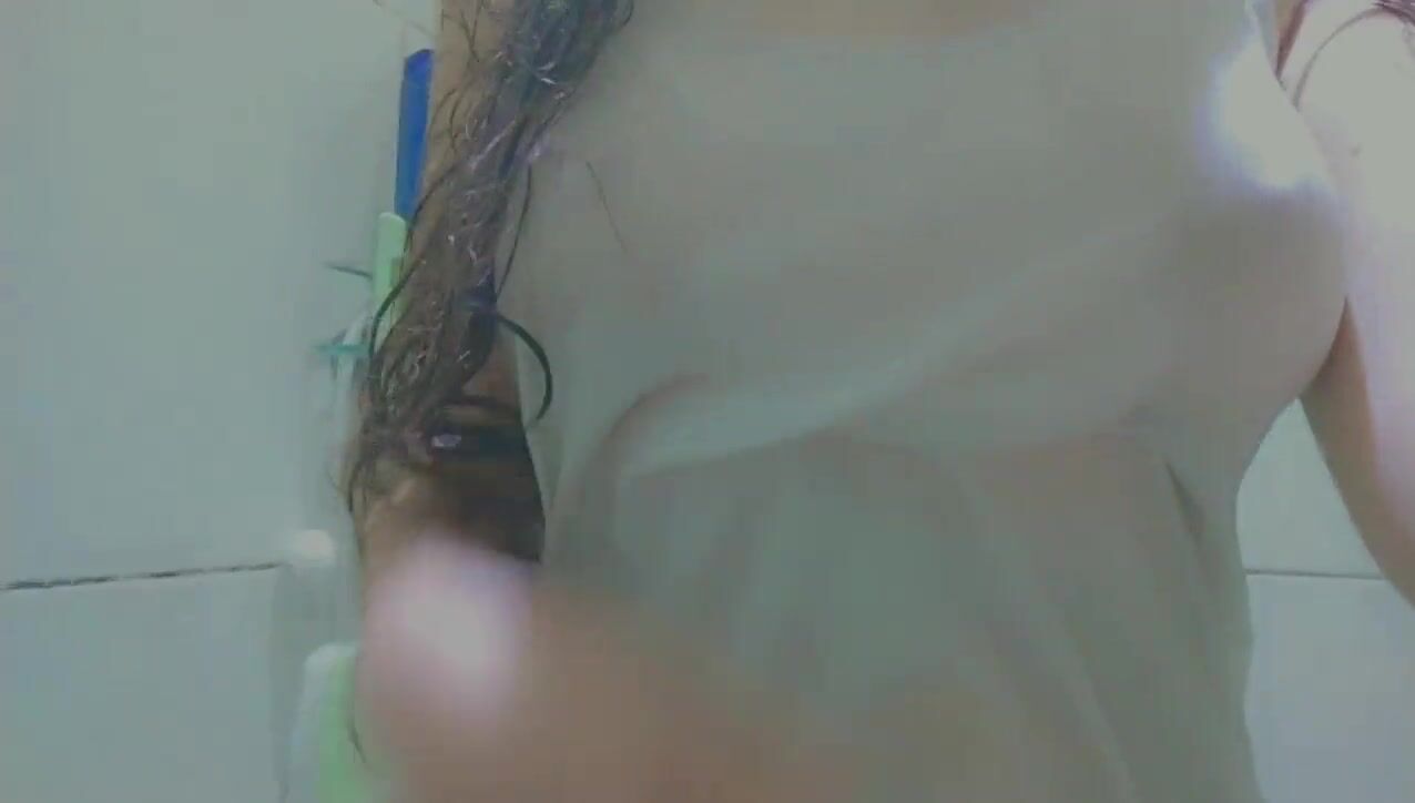 beauty wearing a white tshirt and masturbation at shower