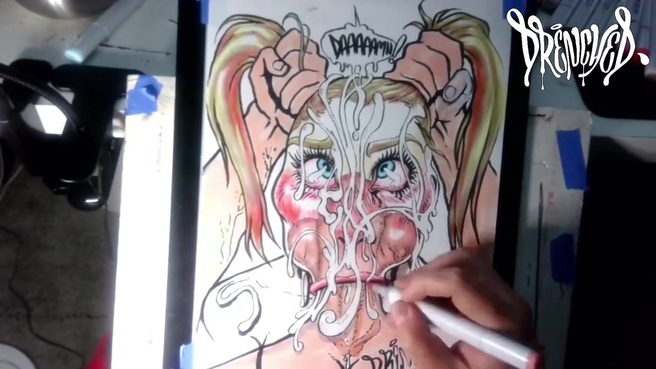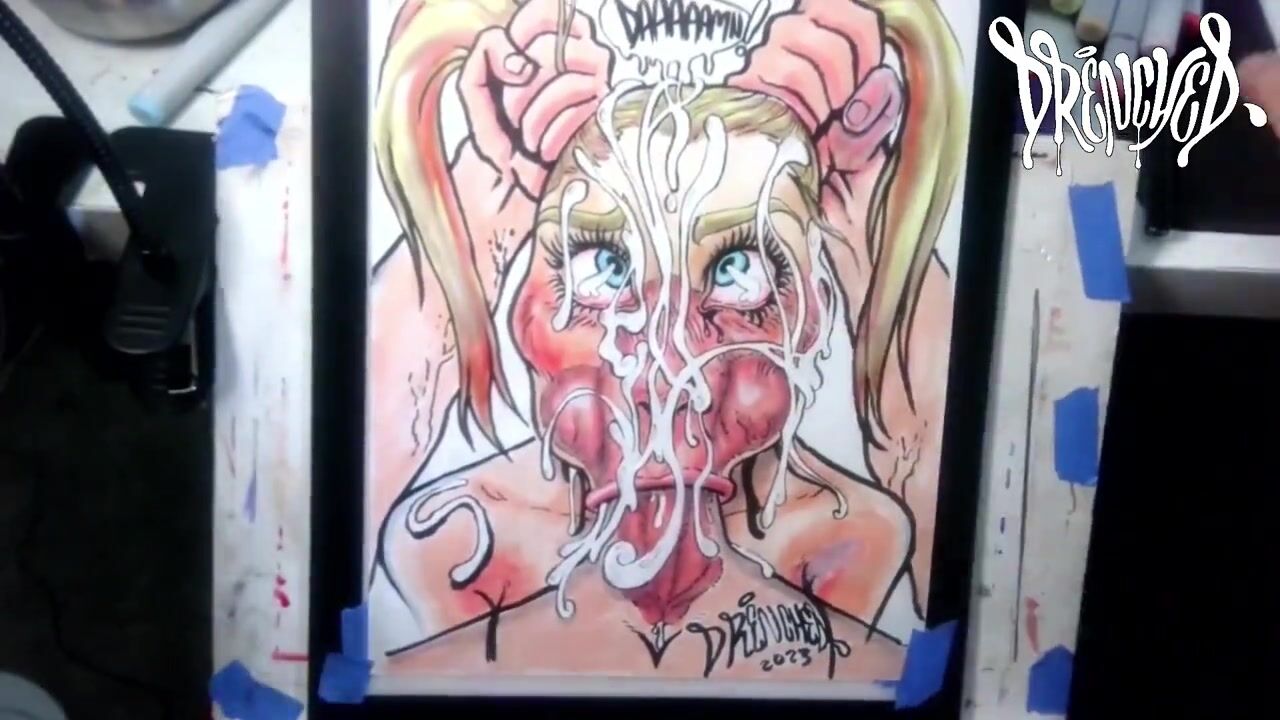 When This babe Manages to Fit Your Ramrod & Balls in Her Throat at The Same Time - Ejaculation Drawing Timelapse
