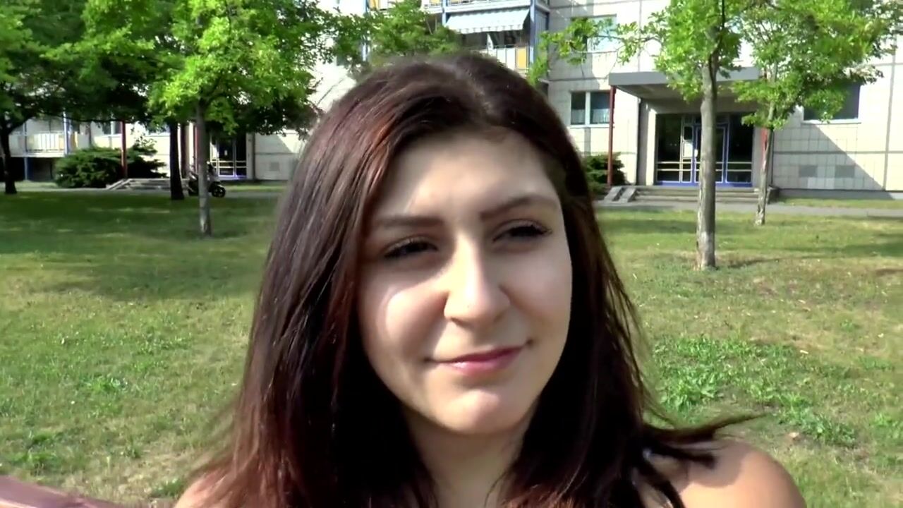 Pleasant large breasts brunette hair sprayed on her bazookas
